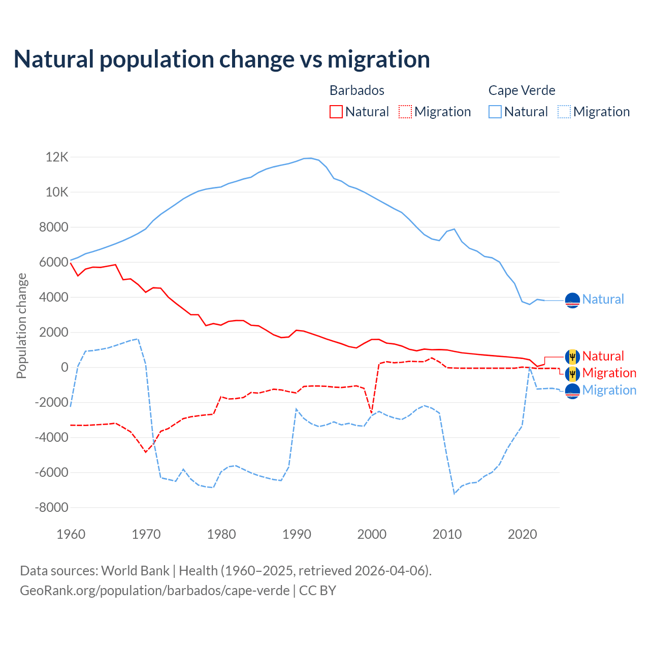 Population differences between Barbados and Cape Verde