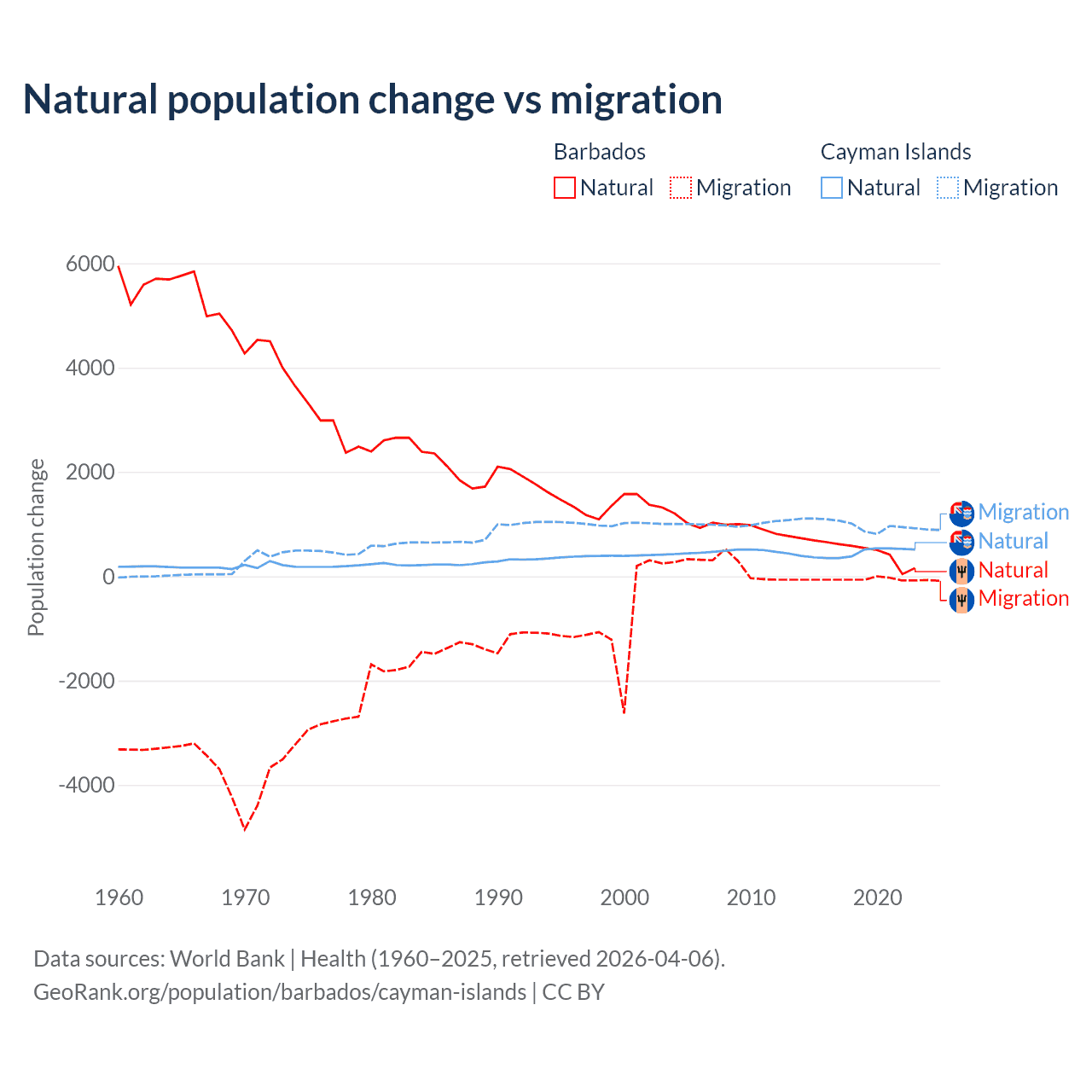 Population differences between Barbados and the Cayman Islands