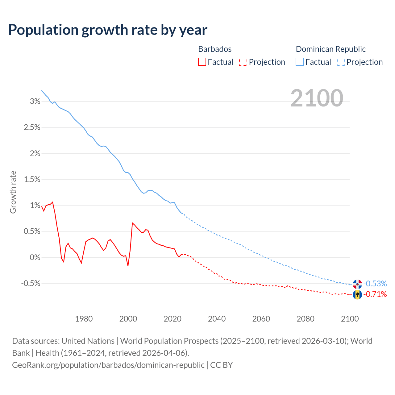 Barbados vs Dominican Republic: population by year and forecast
