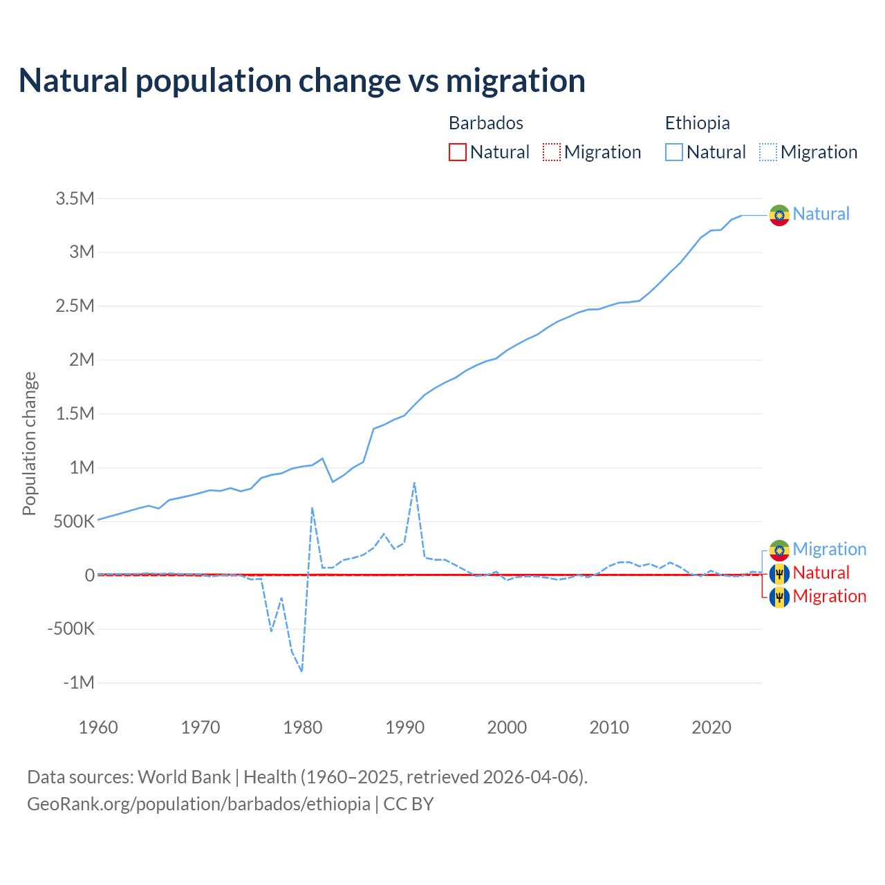 Population differences between Barbados and Ethiopia