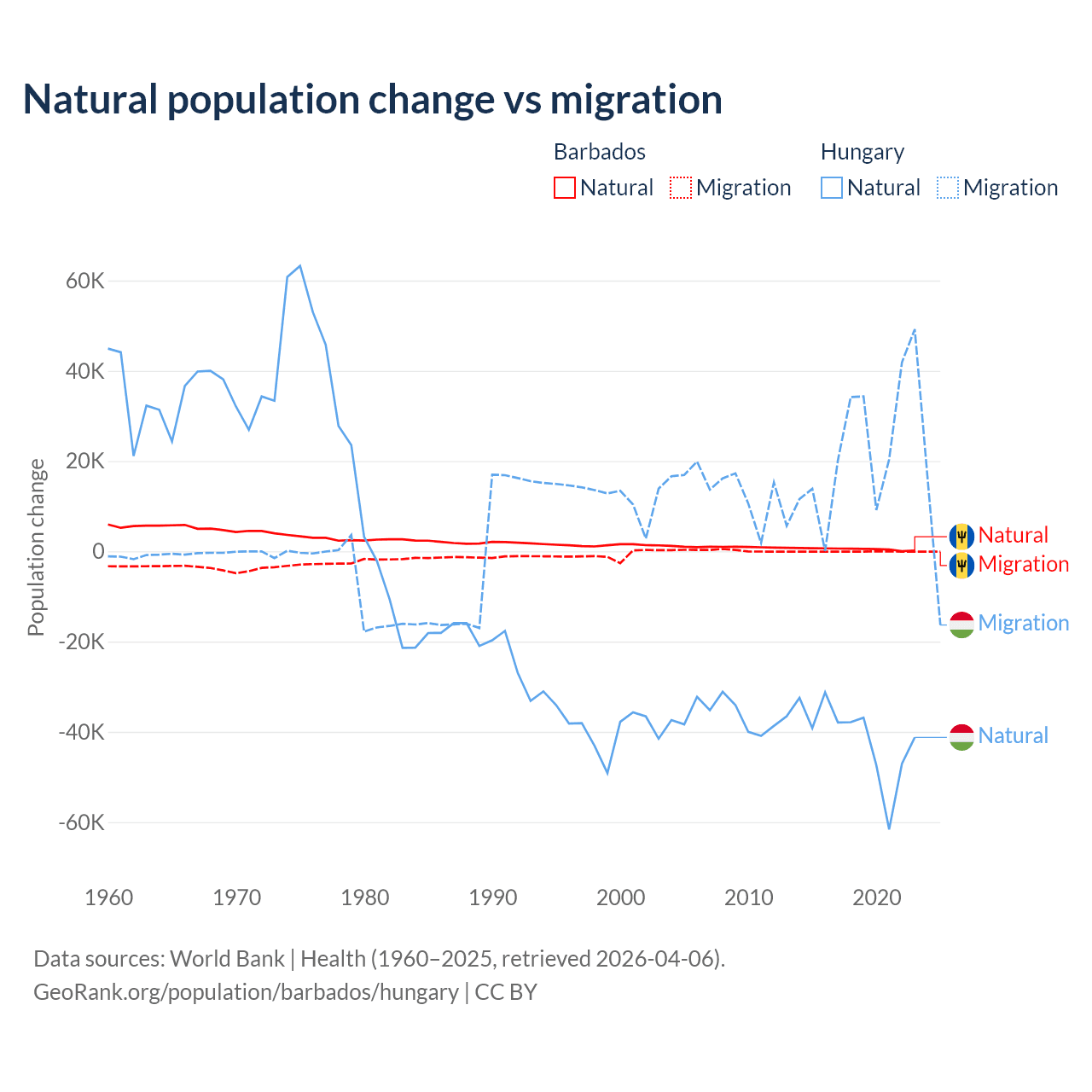 Population differences between Barbados and Hungary