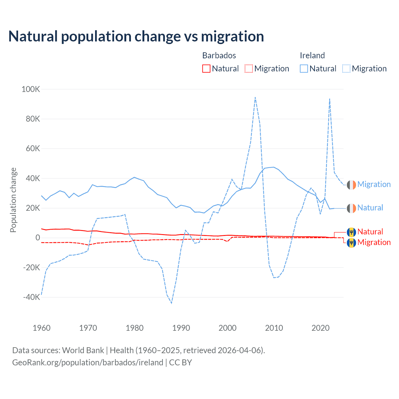 Population differences between Barbados and Ireland