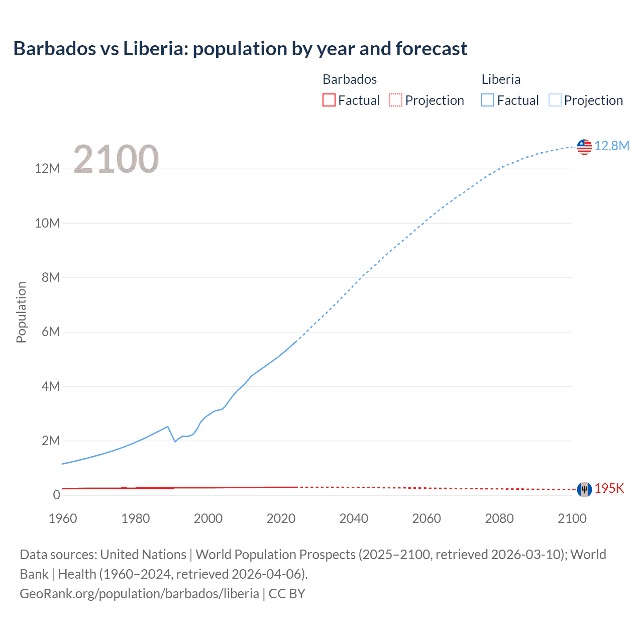 Population differences between Barbados and Liberia