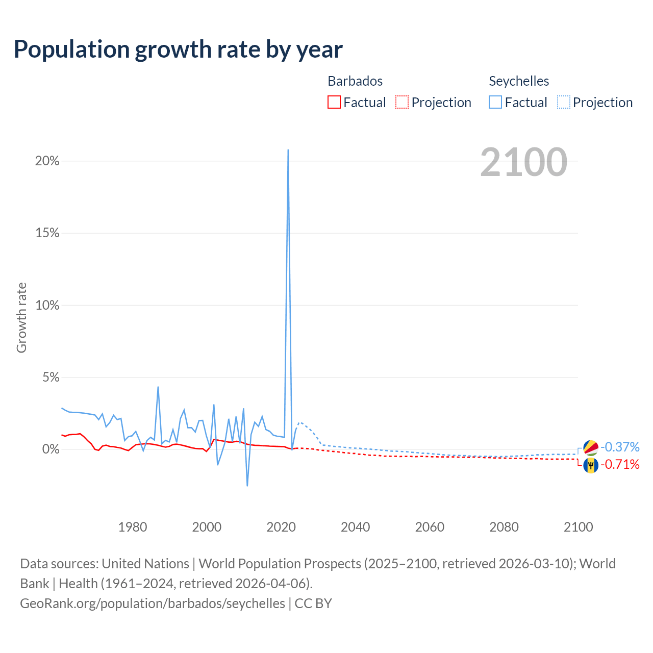 Barbados vs Seychelles: population by year and forecast