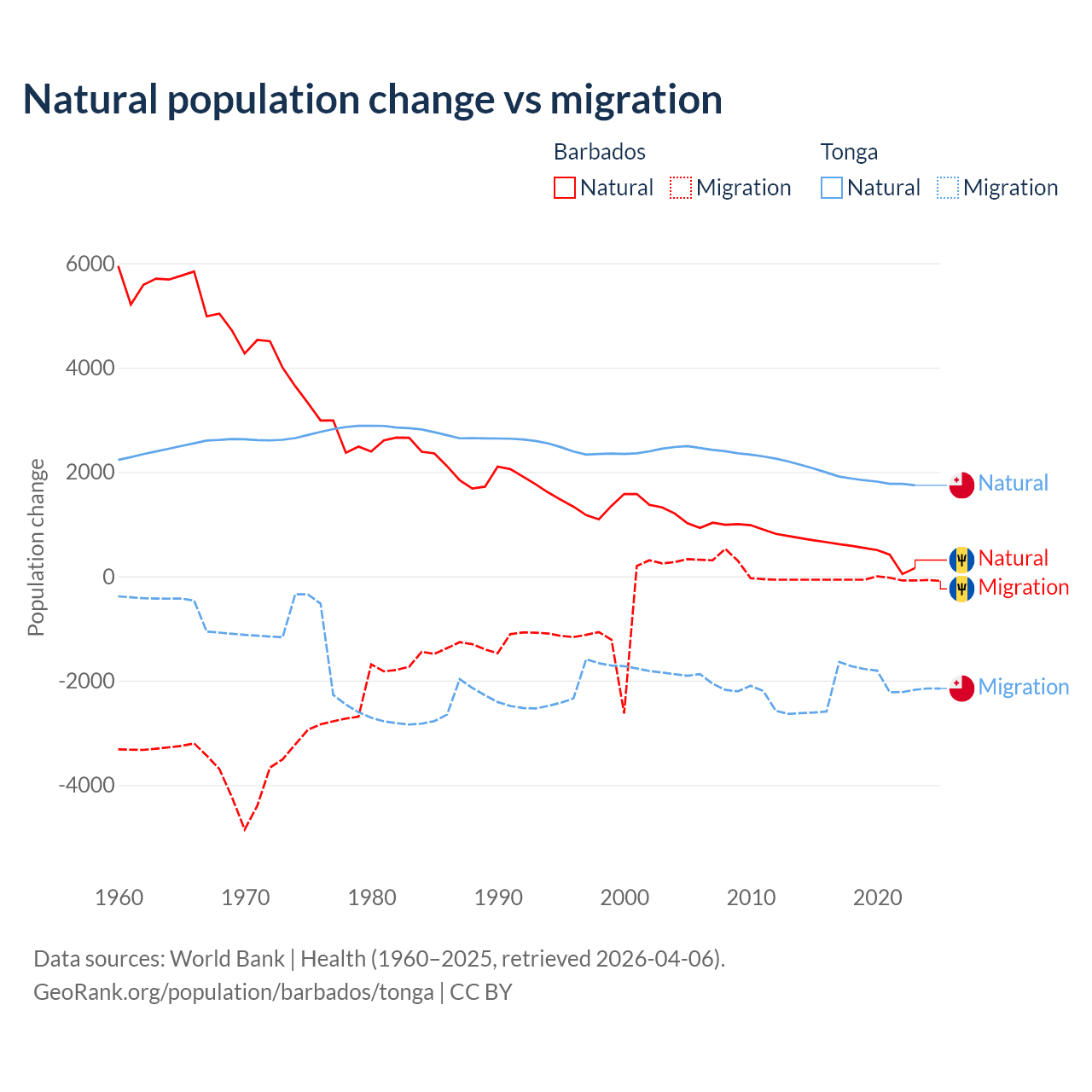 Population differences between Barbados and Tonga