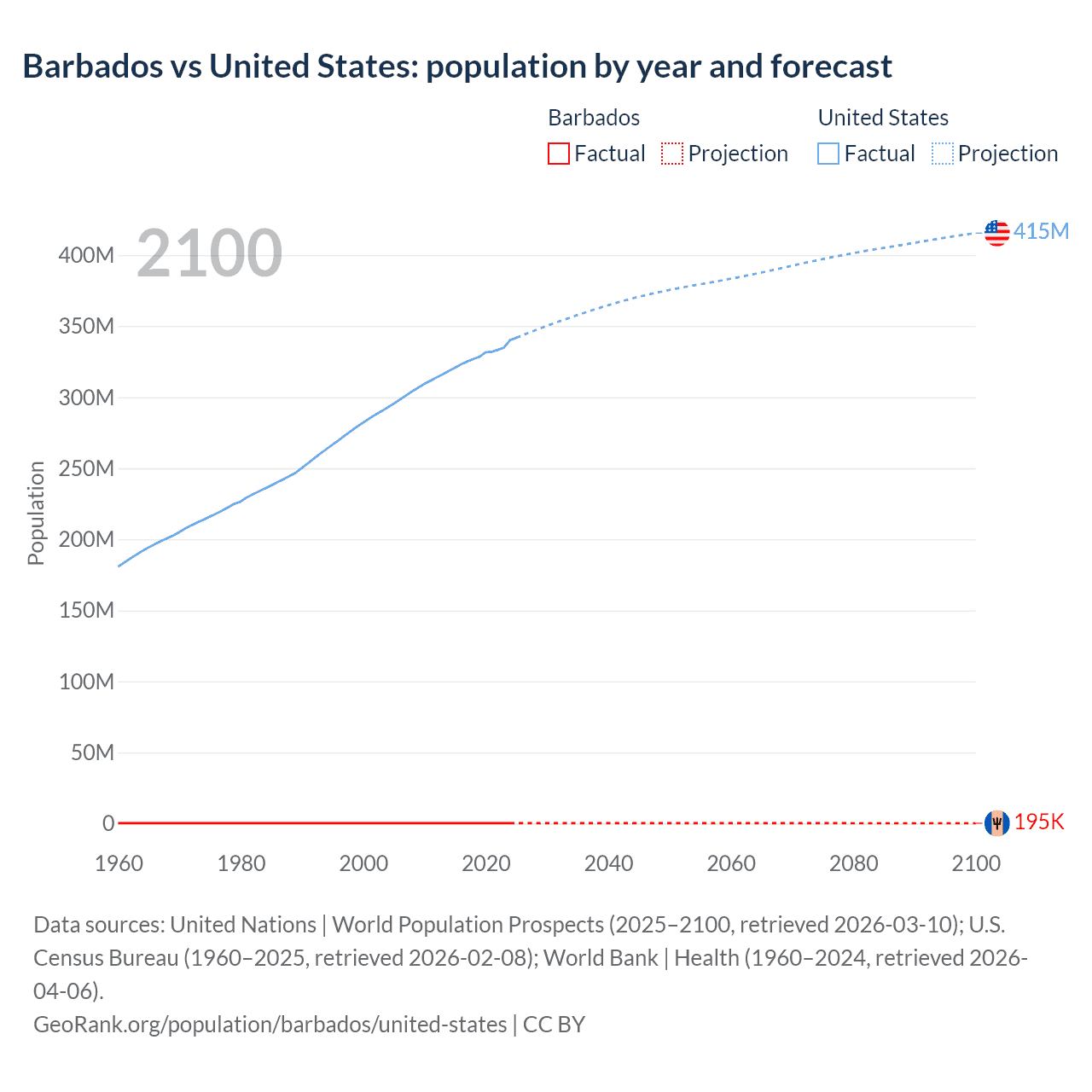 Population differences between Barbados and the United States