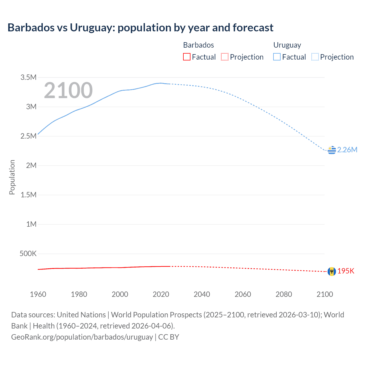 Population differences between Barbados and Uruguay