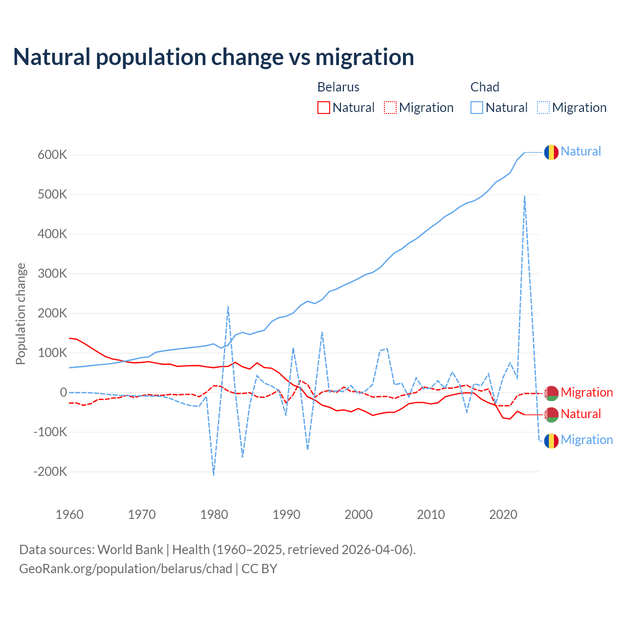 Population differences between Belarus and Chad