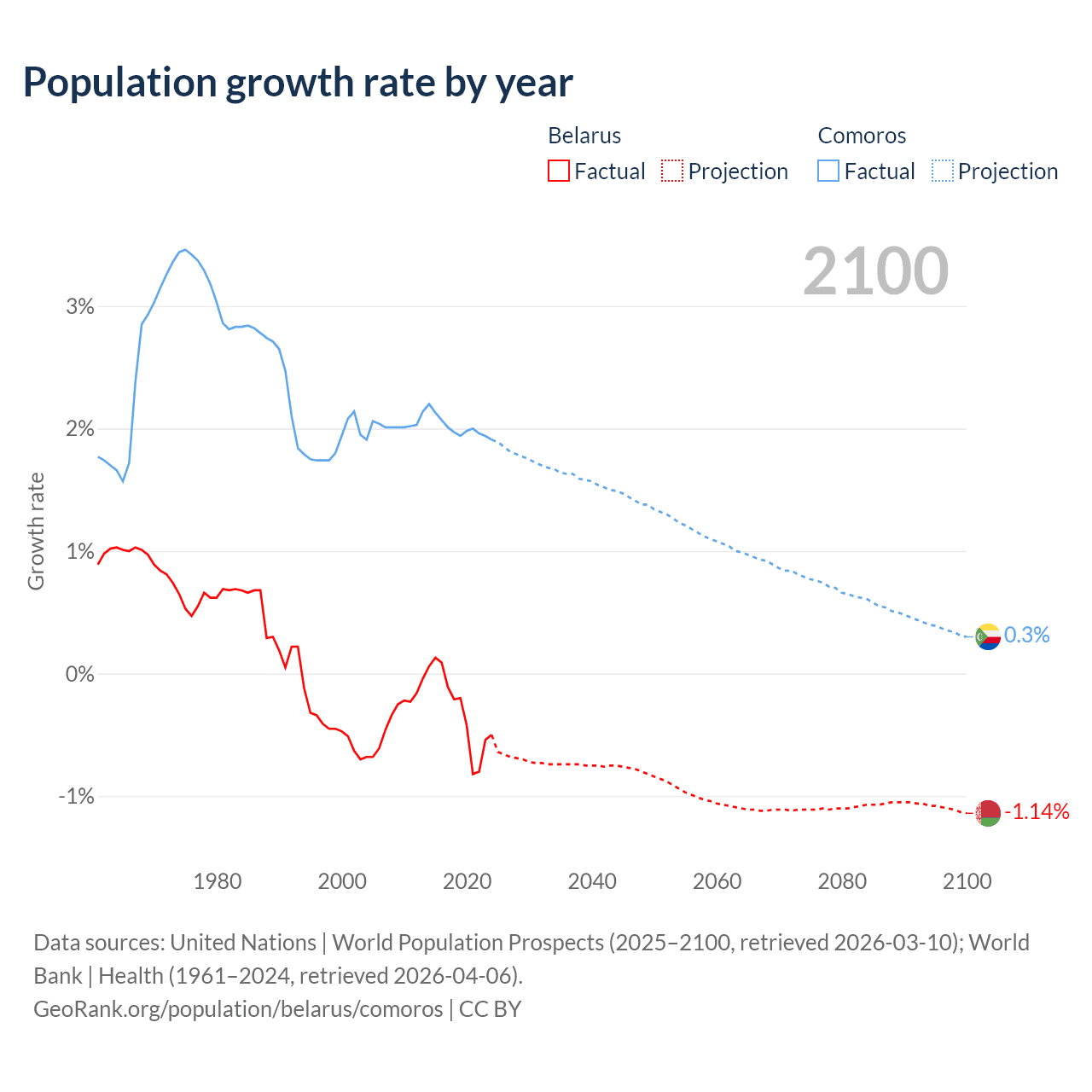 Belarus vs Comoros: population by year and forecast