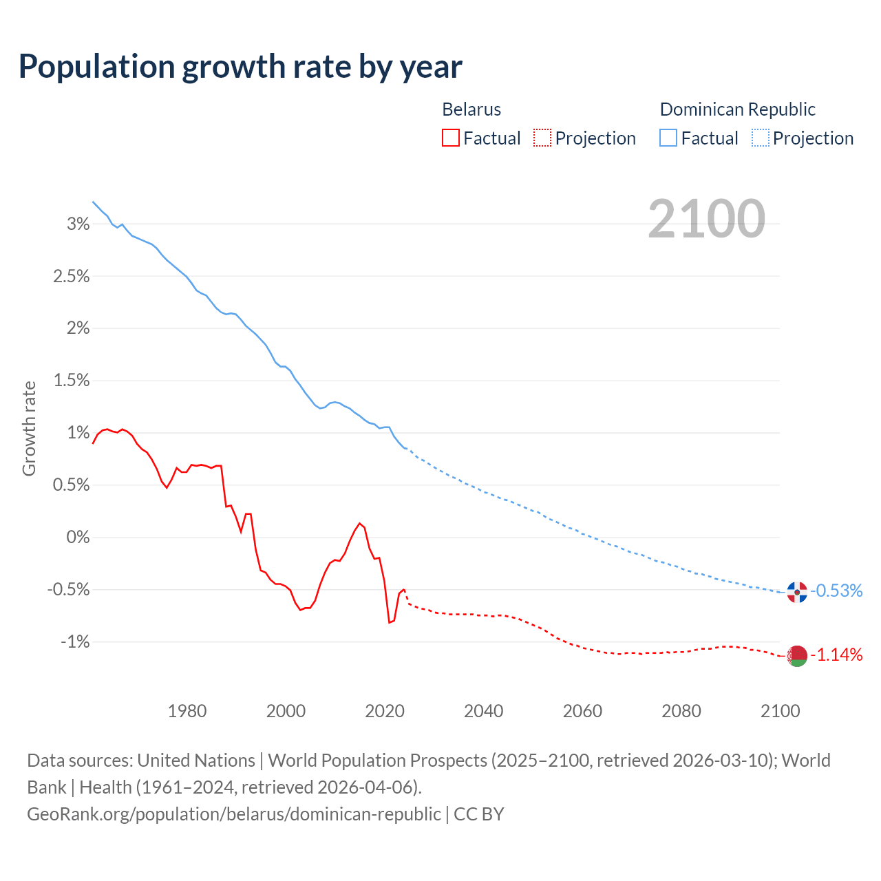 - For the last 10 years, Belarus has had an average growth rate of -0.3% per year vs +1.04% in the Dominican Republic.