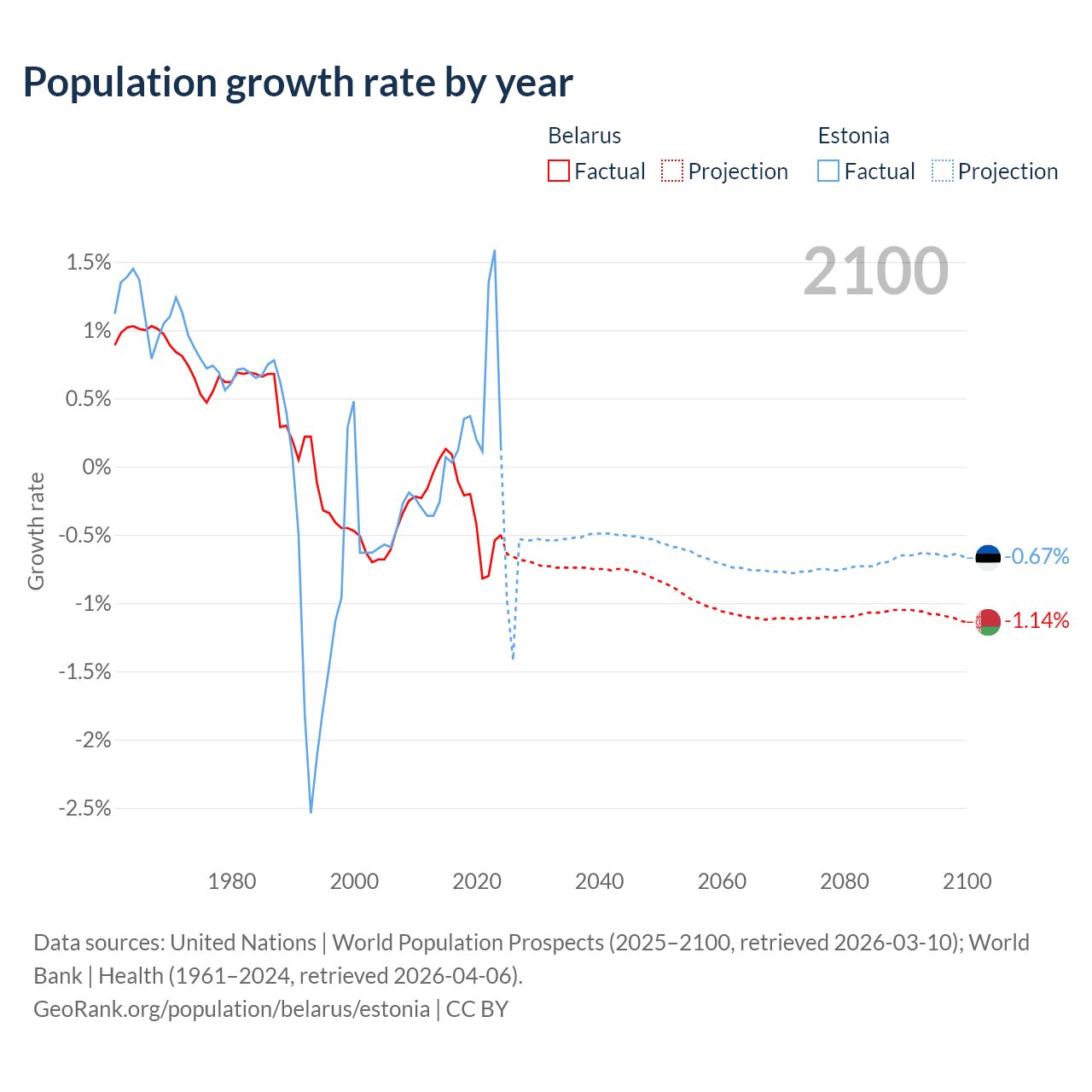 - For the last 10 years, Belarus has had an average growth rate of -0.3% per year vs +0.37% in Estonia.