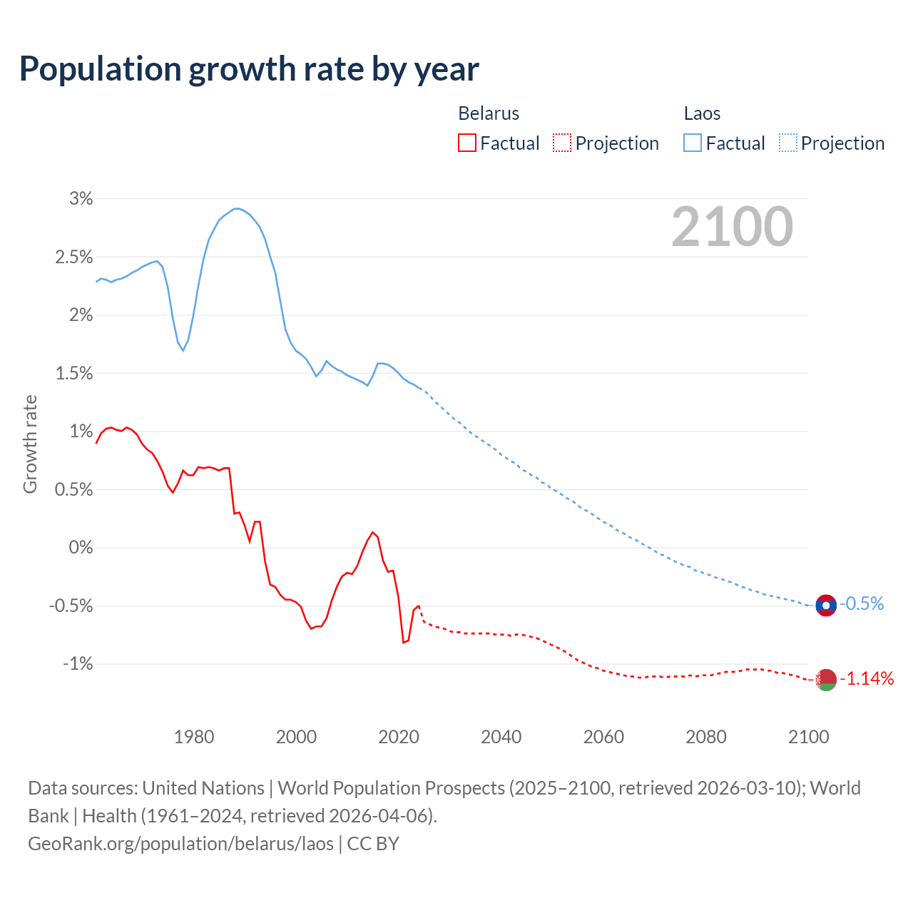 Data sources: World Bank | Health (1960–2024, retrieved 2026-04-06); United Nations | World Population Prospects (1960–2026, retrieved 2026-03-10); U.S. Census Bureau (1960–2025, retrieved 2026-02-08); Central Intelligence Agency (CIA) (2000–2019, retrieved 2026-02-20).