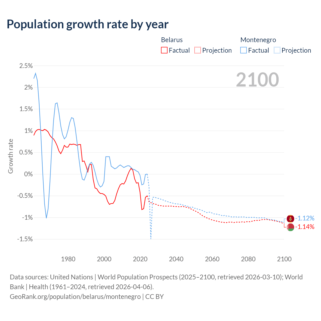 Belarus vs Montenegro: population by year and forecast