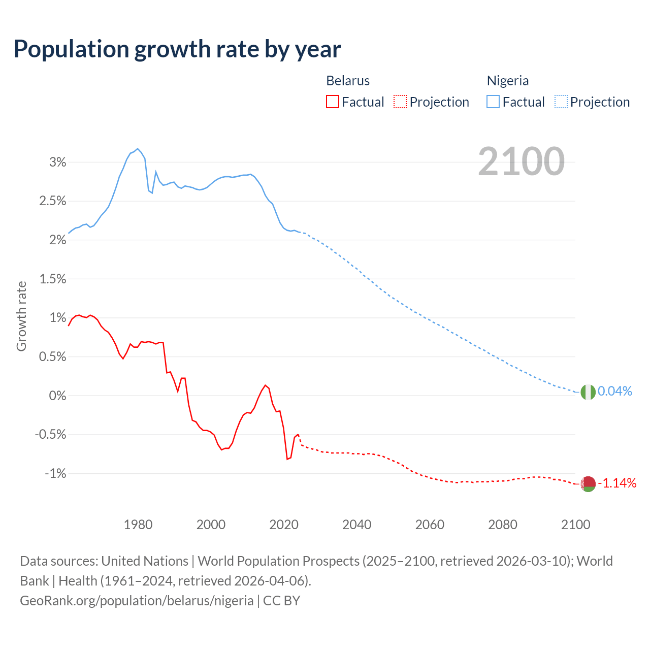 Belarus vs Nigeria: population by year and forecast