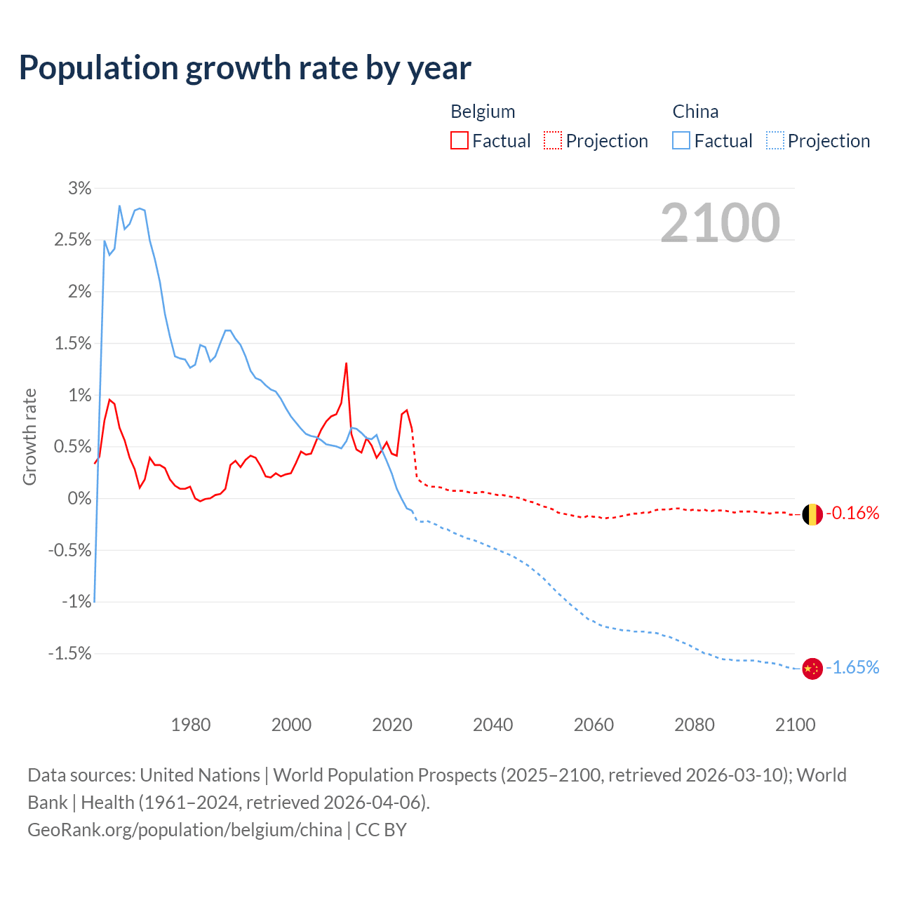 - For the last 10 years, Belgium has had an average growth rate of +0.55% per year vs +0.3% in China.