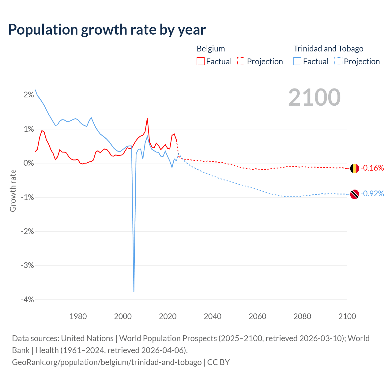- For the last 10 years, Belgium has had an average growth rate of +0.55% per year vs +0.19% in Trinidad and Tobago.
