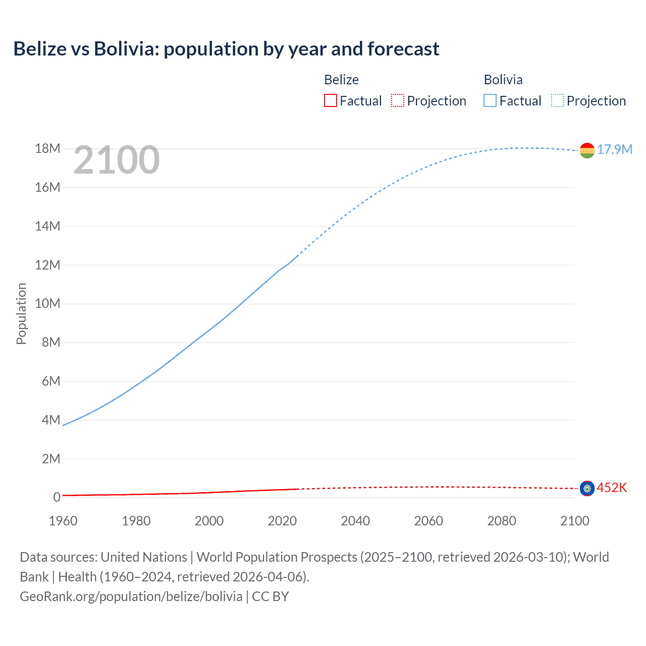 Belize vs Bolivia: population by year and forecast