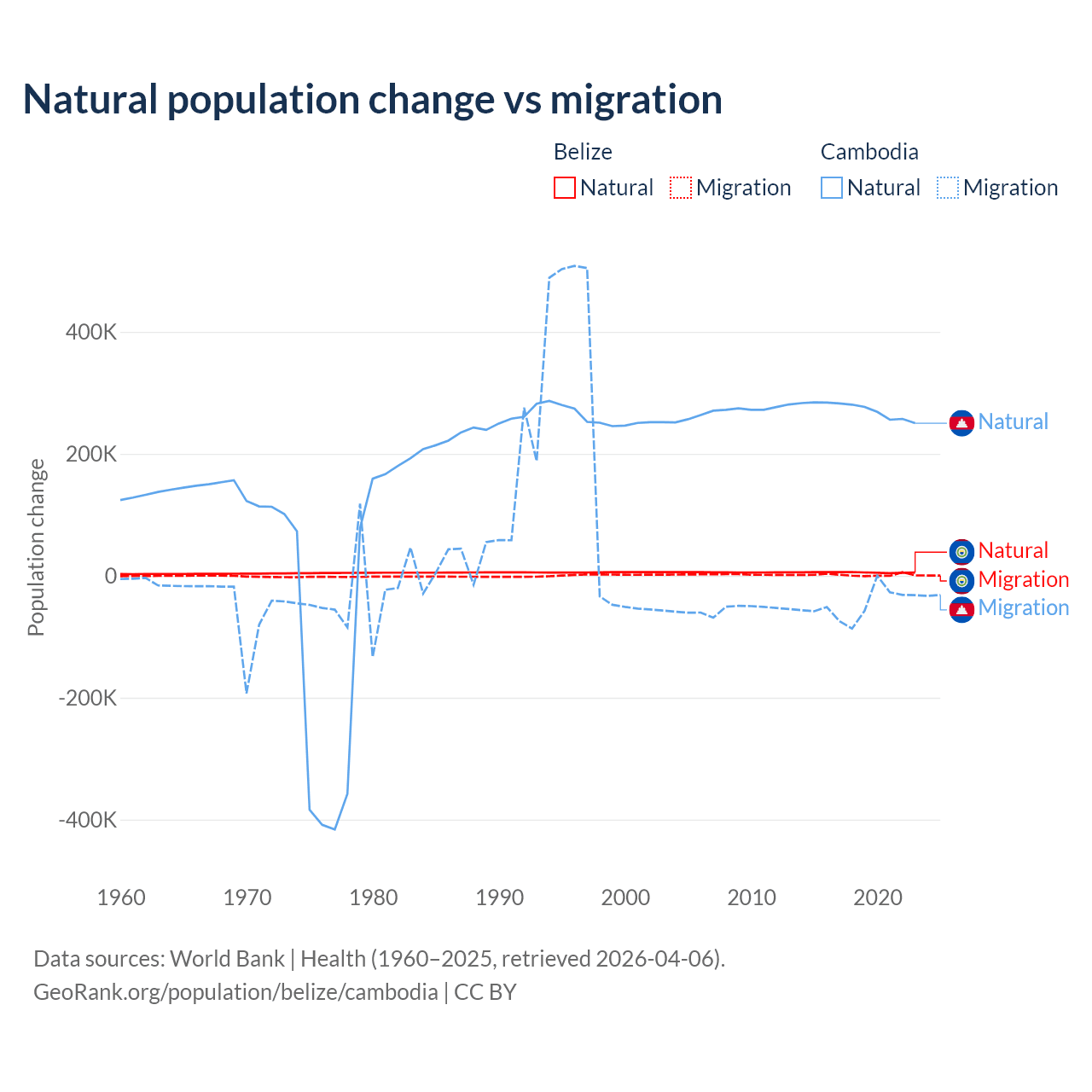 Population differences between Belize and Cambodia