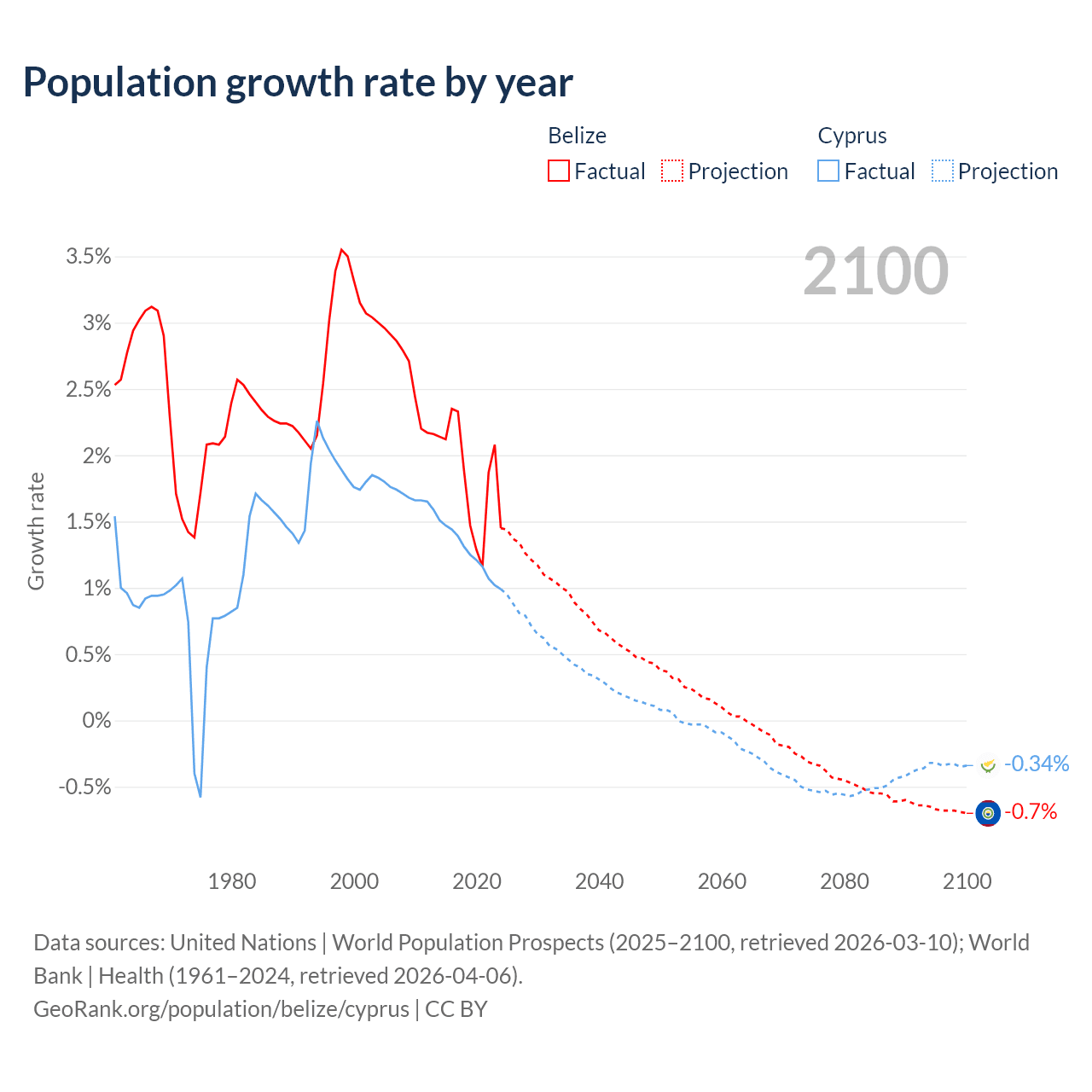 - For the last 10 years, Belize has had an average growth rate of +1.83% per year vs +1.26% in Cyprus.