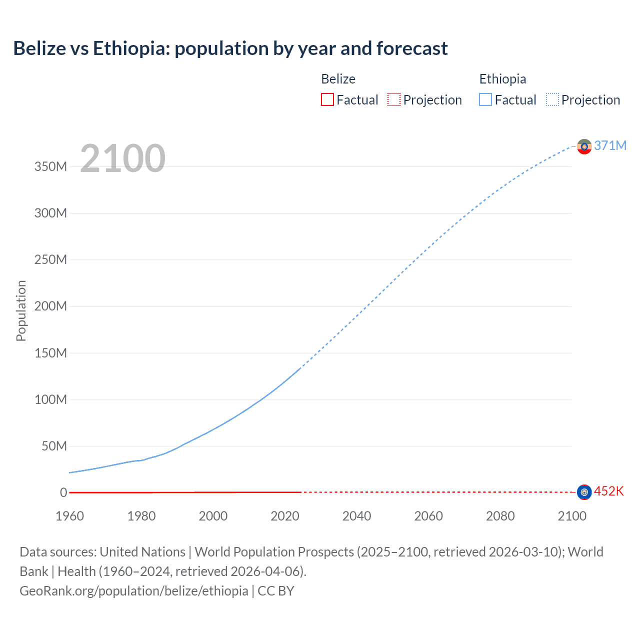 Belize vs Ethiopia: population by year and forecast