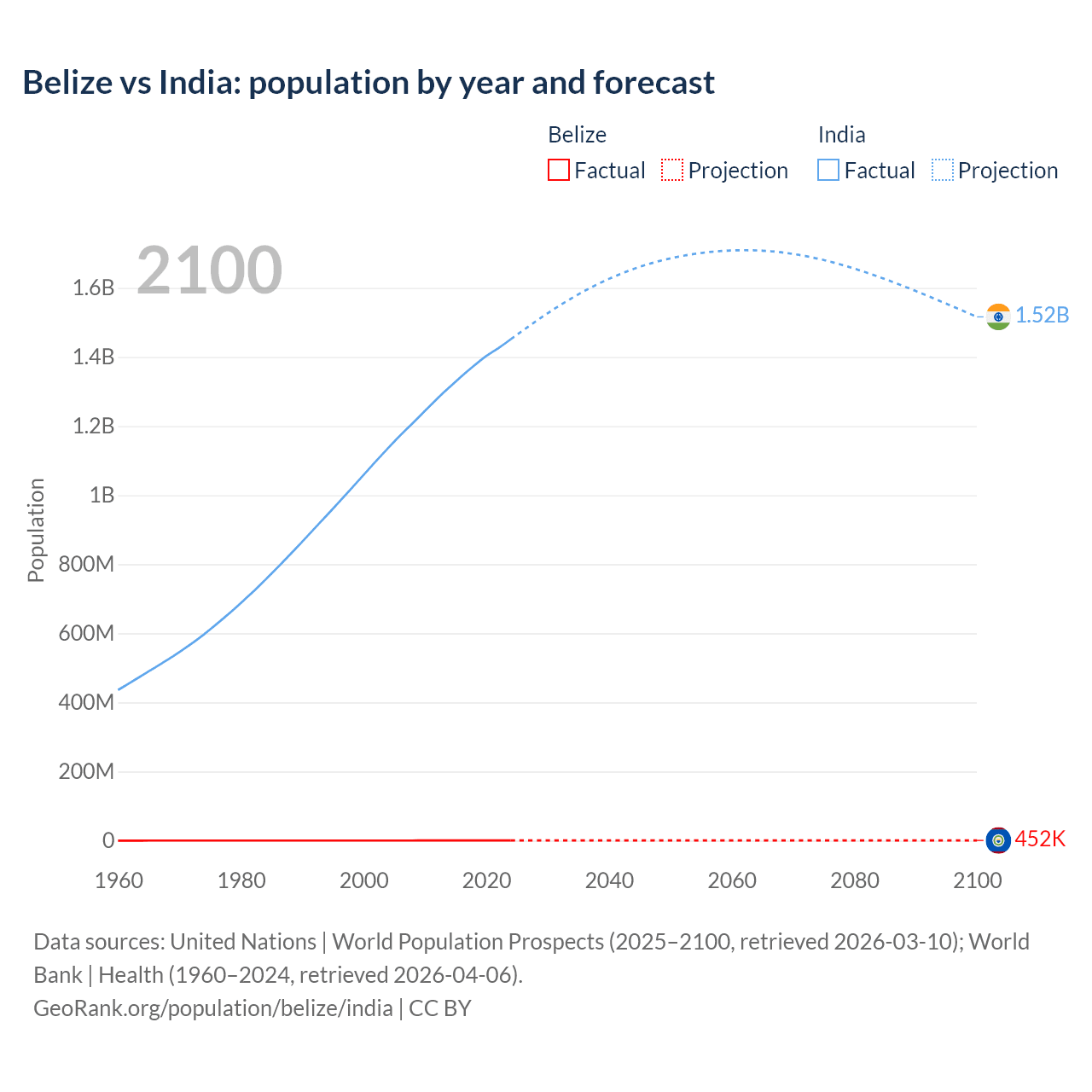Population differences between Belize and India