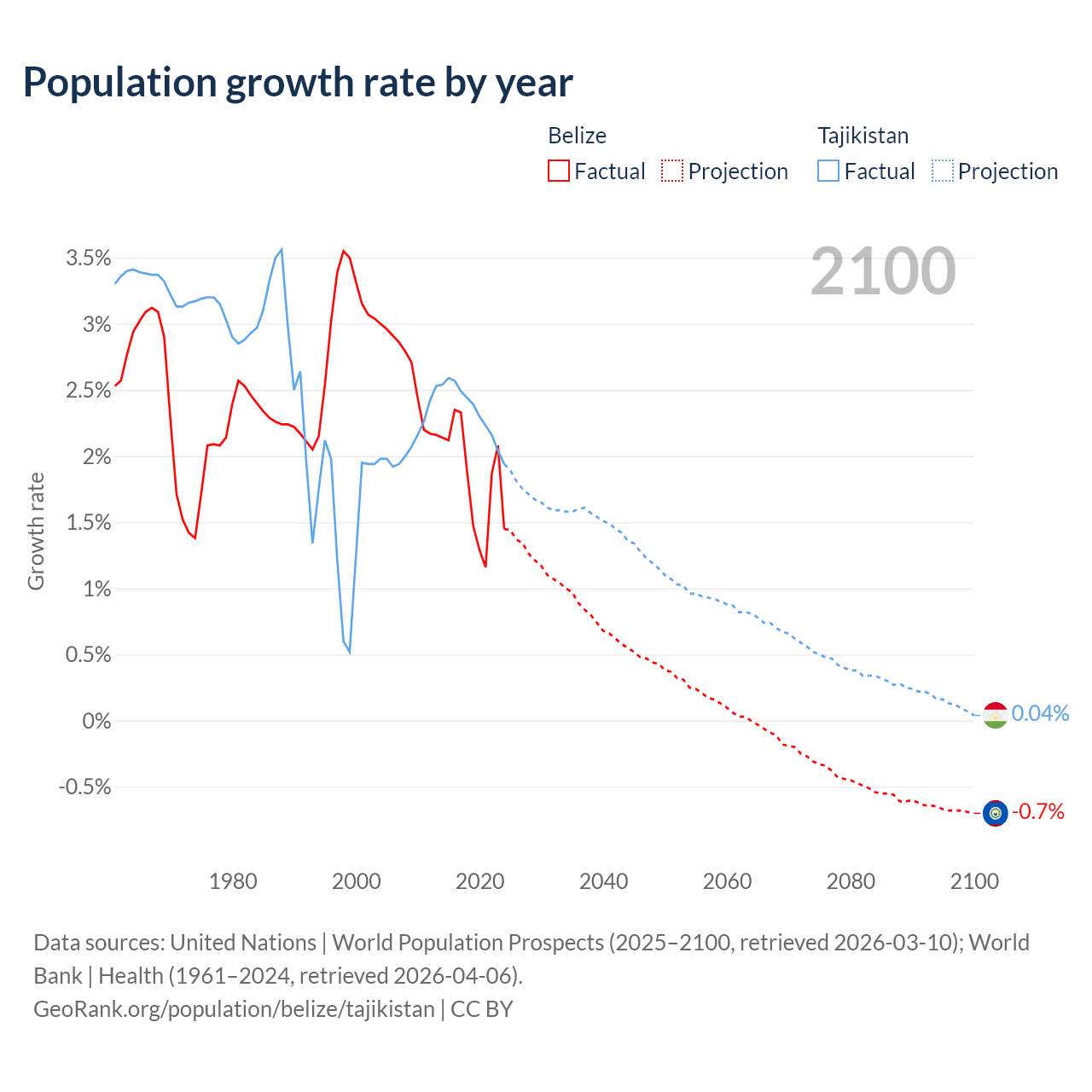 Belize vs Tajikistan: population by year and forecast