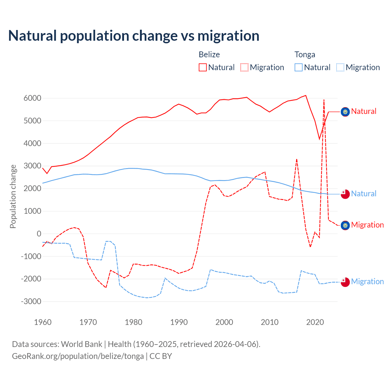 Population differences between Belize and Tonga