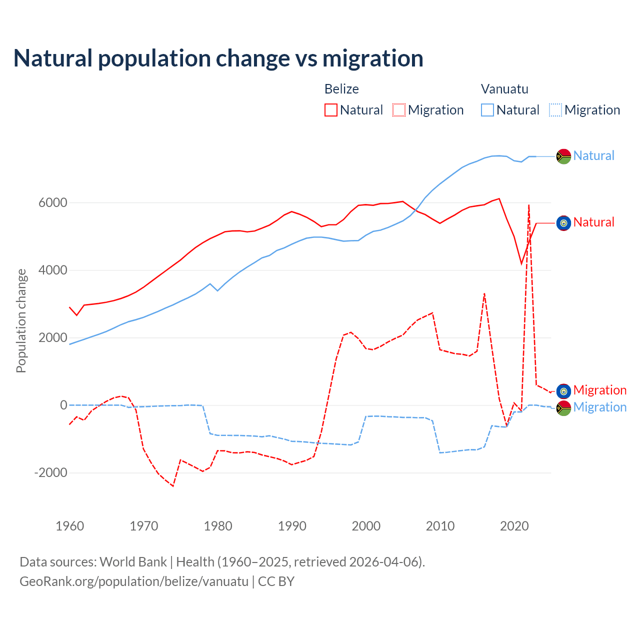 Population differences between Belize and Vanuatu