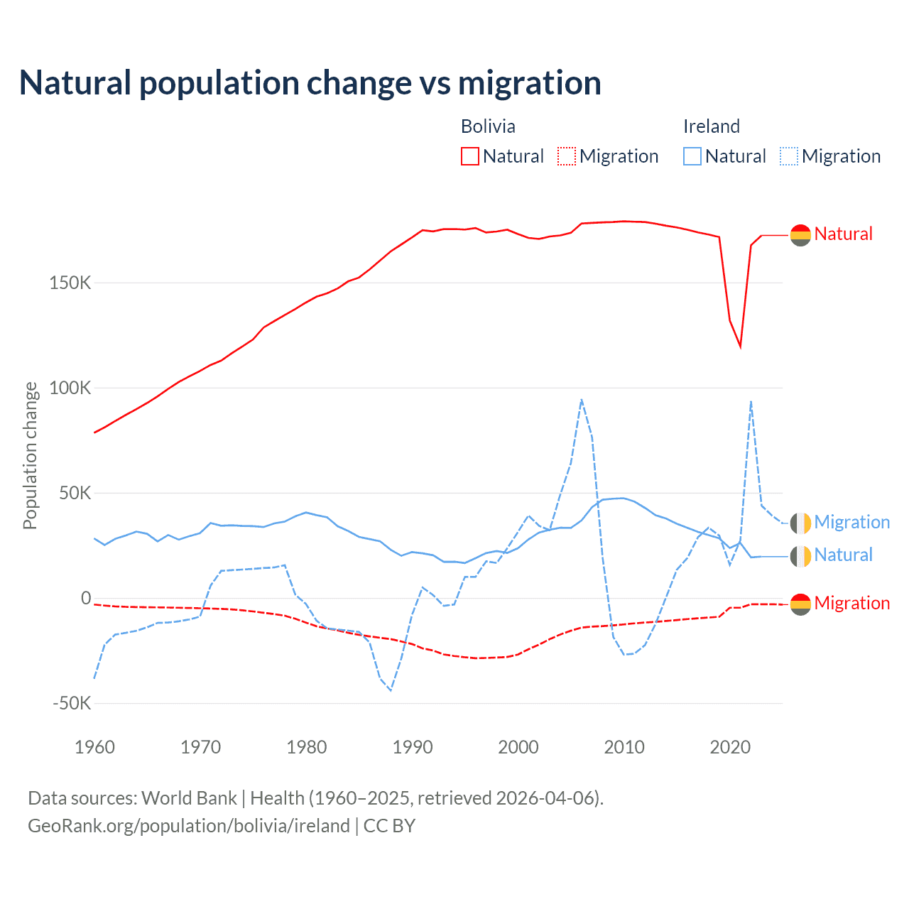 Population differences between Bolivia and Ireland