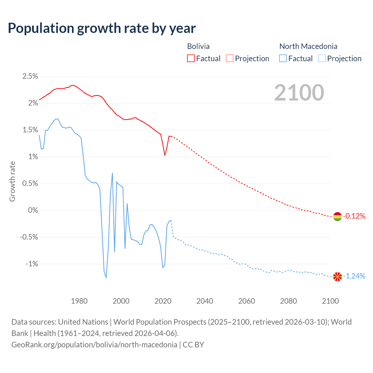 Bolivia vs North Macedonia: population by year and forecast
