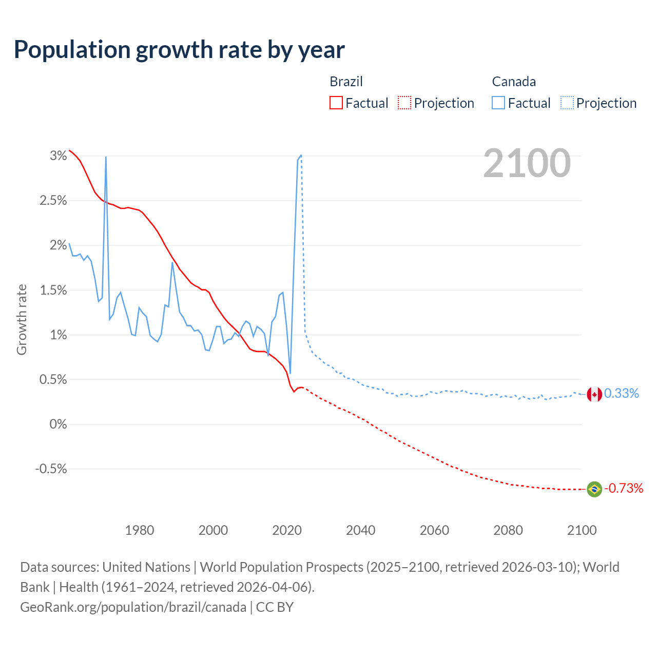 Population differences between Brazil and Canada