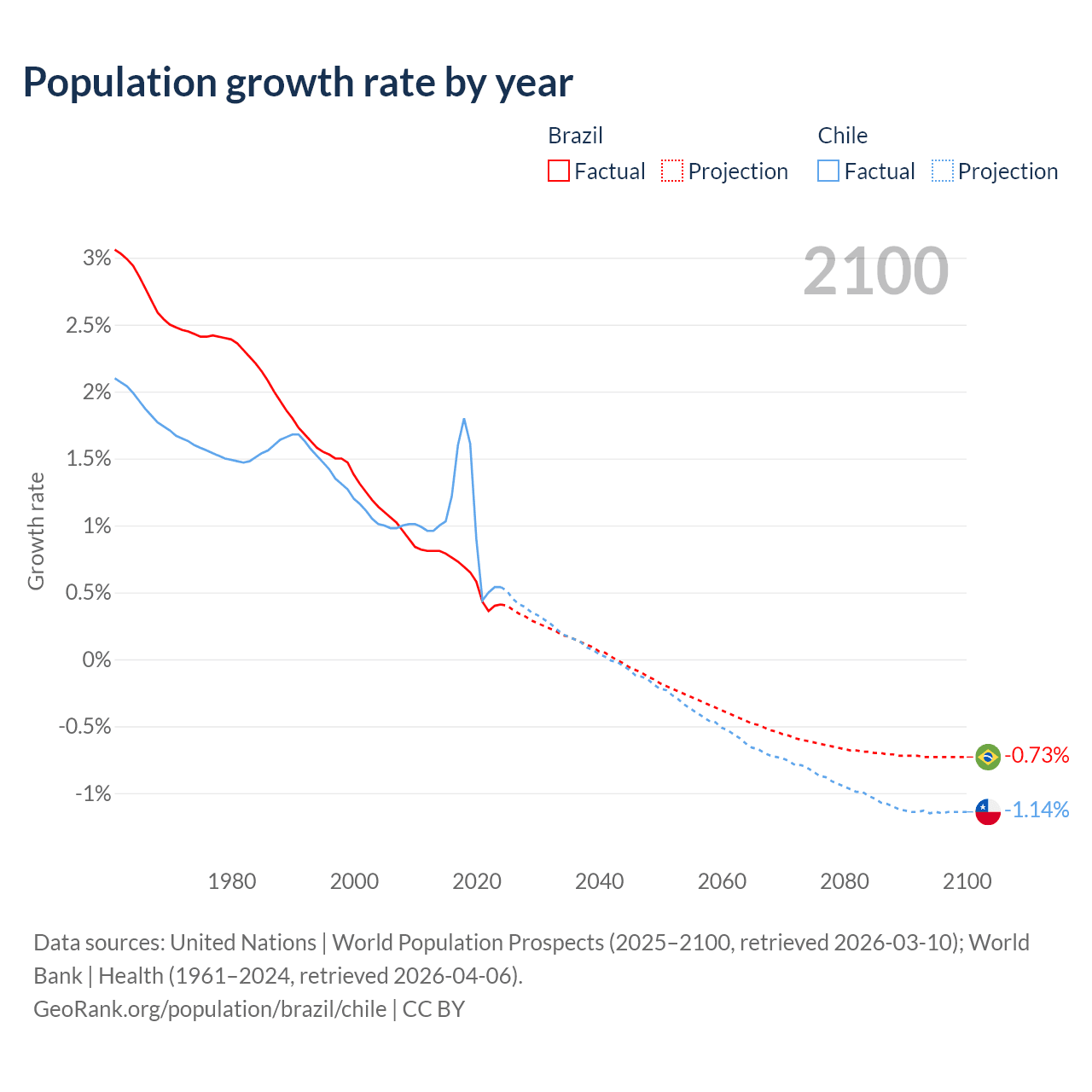 Population differences between Brazil and Chile