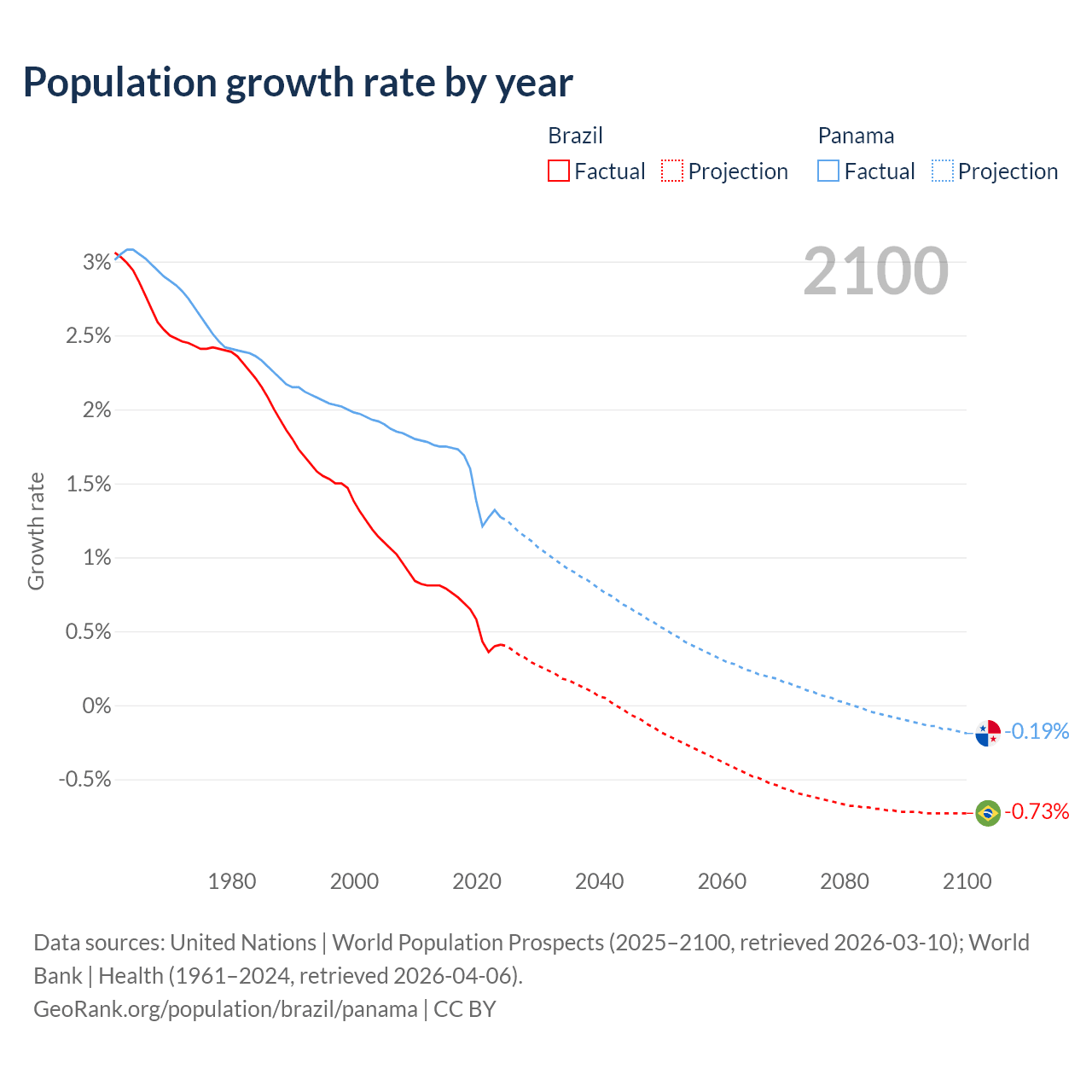 - For the last 10 years, Brazil has had an average growth rate of +0.6% per year vs +1.52% in Panama.