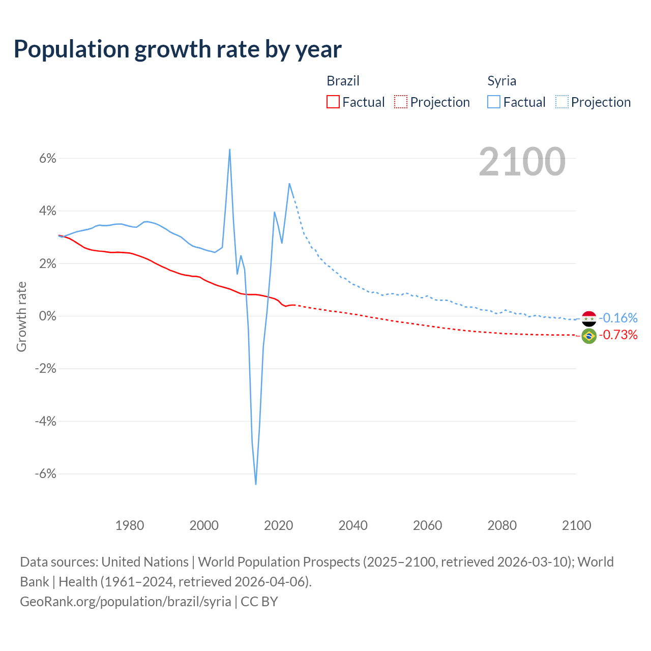 - For the last 10 years, Brazil has had an average growth rate of +0.6% per year vs +1.25% in Syria.