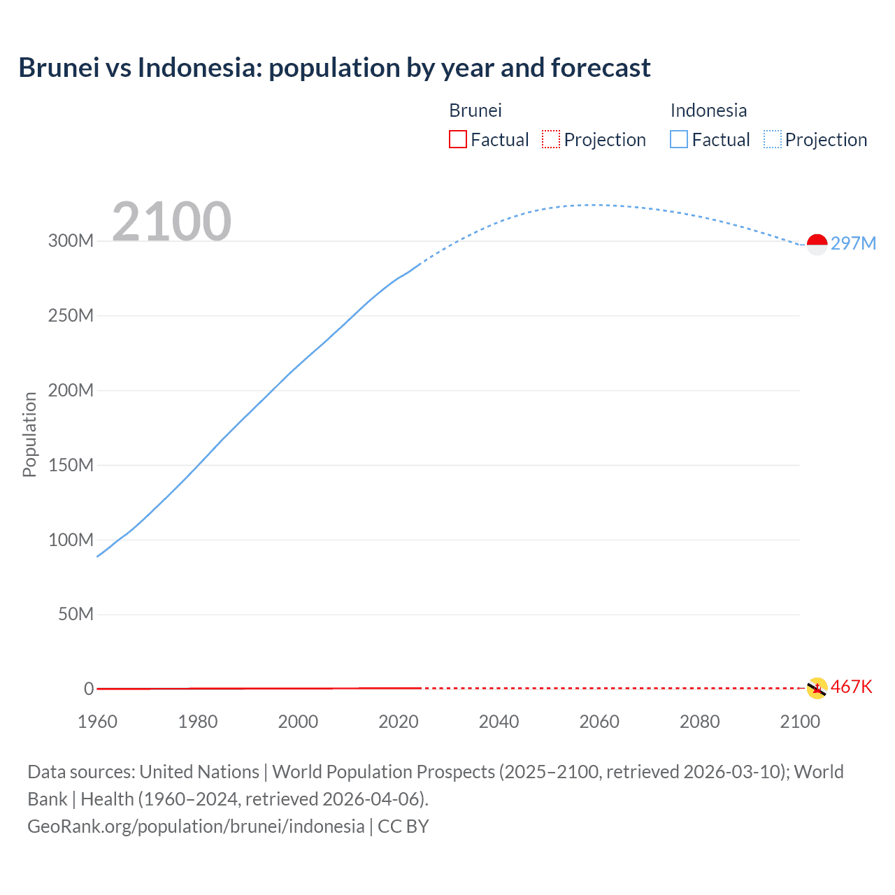 Brunei vs Indonesia: population by year and forecast