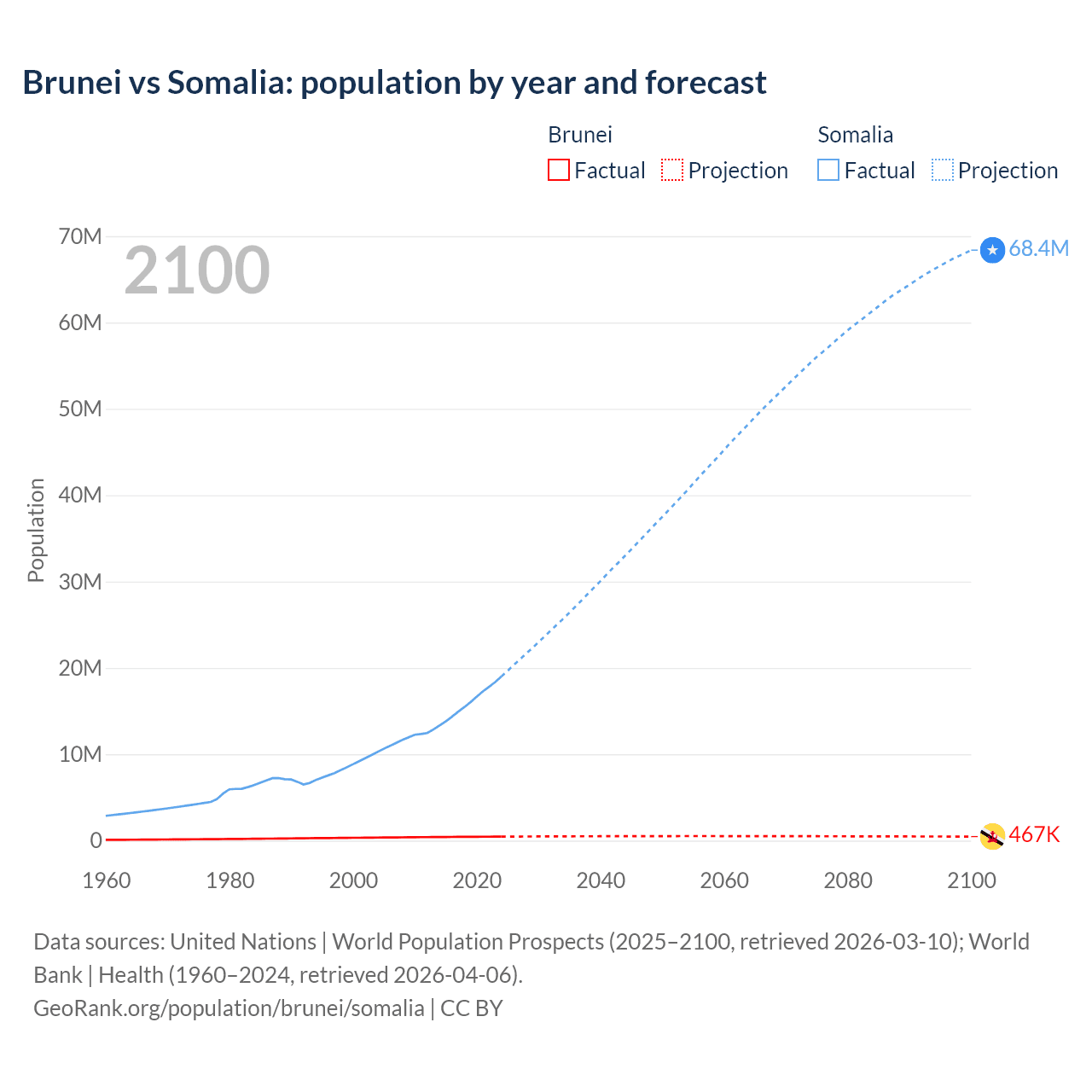 Population differences between Brunei and Somalia