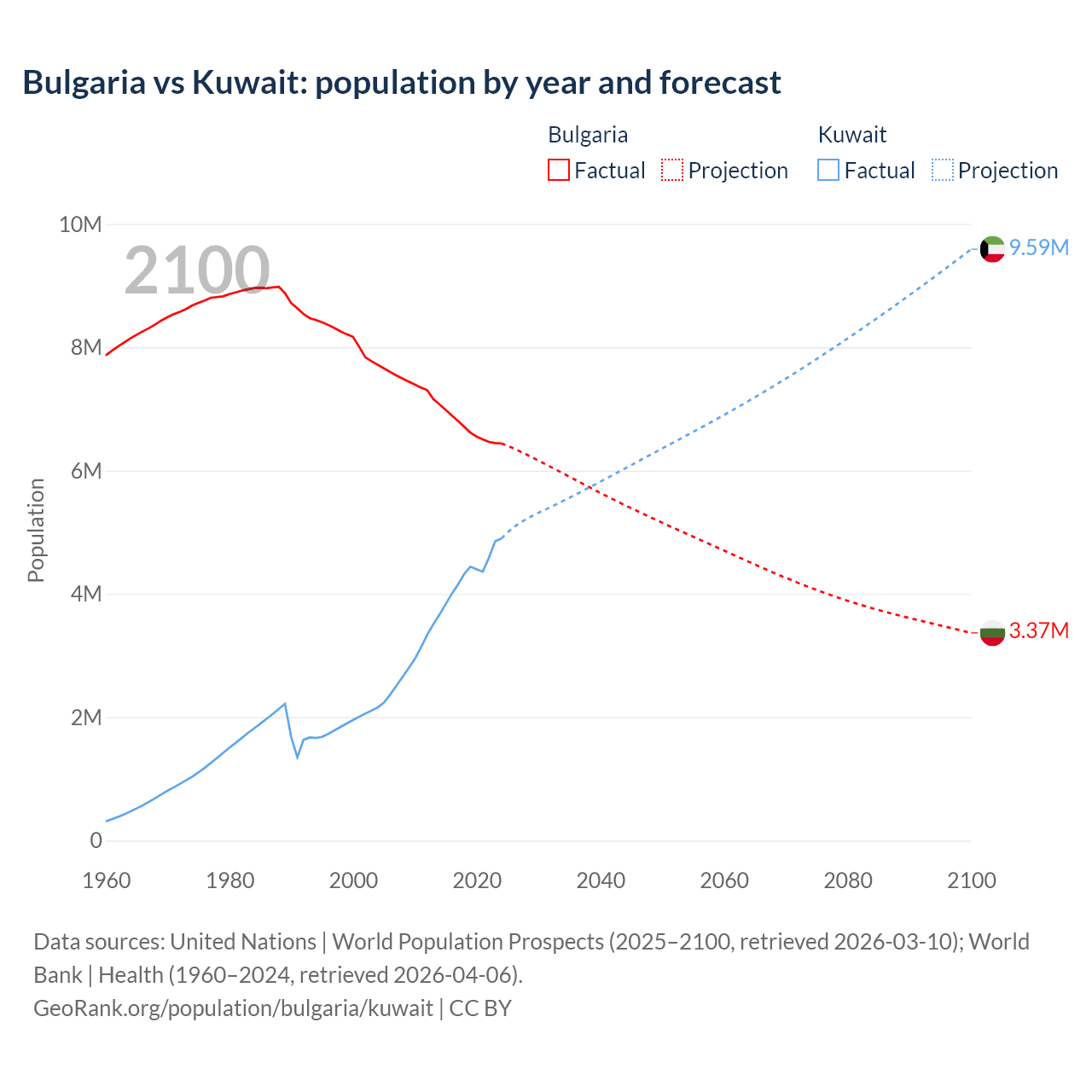 Bulgaria vs Kuwait: population by year and forecast