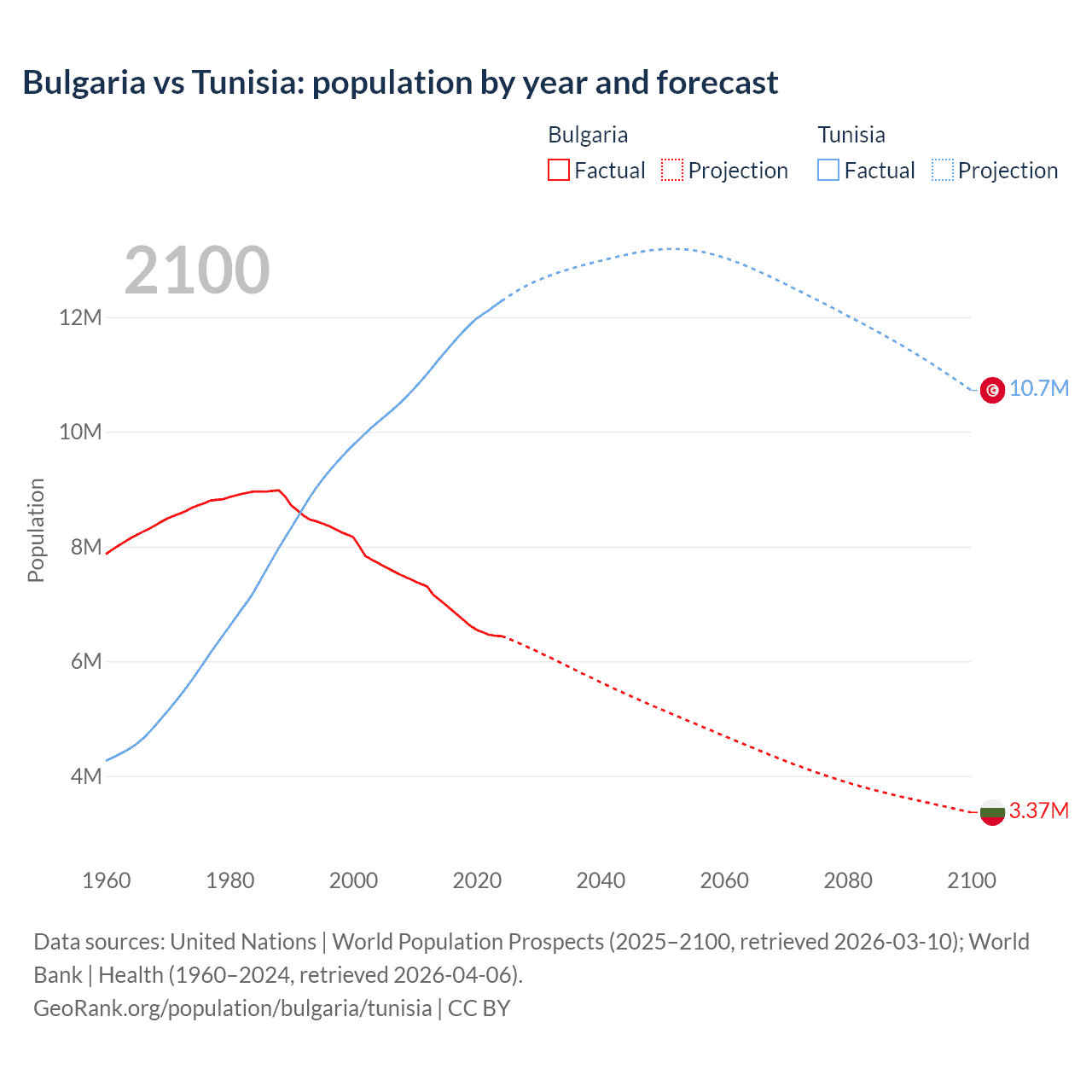 Population differences between Bulgaria and Tunisia