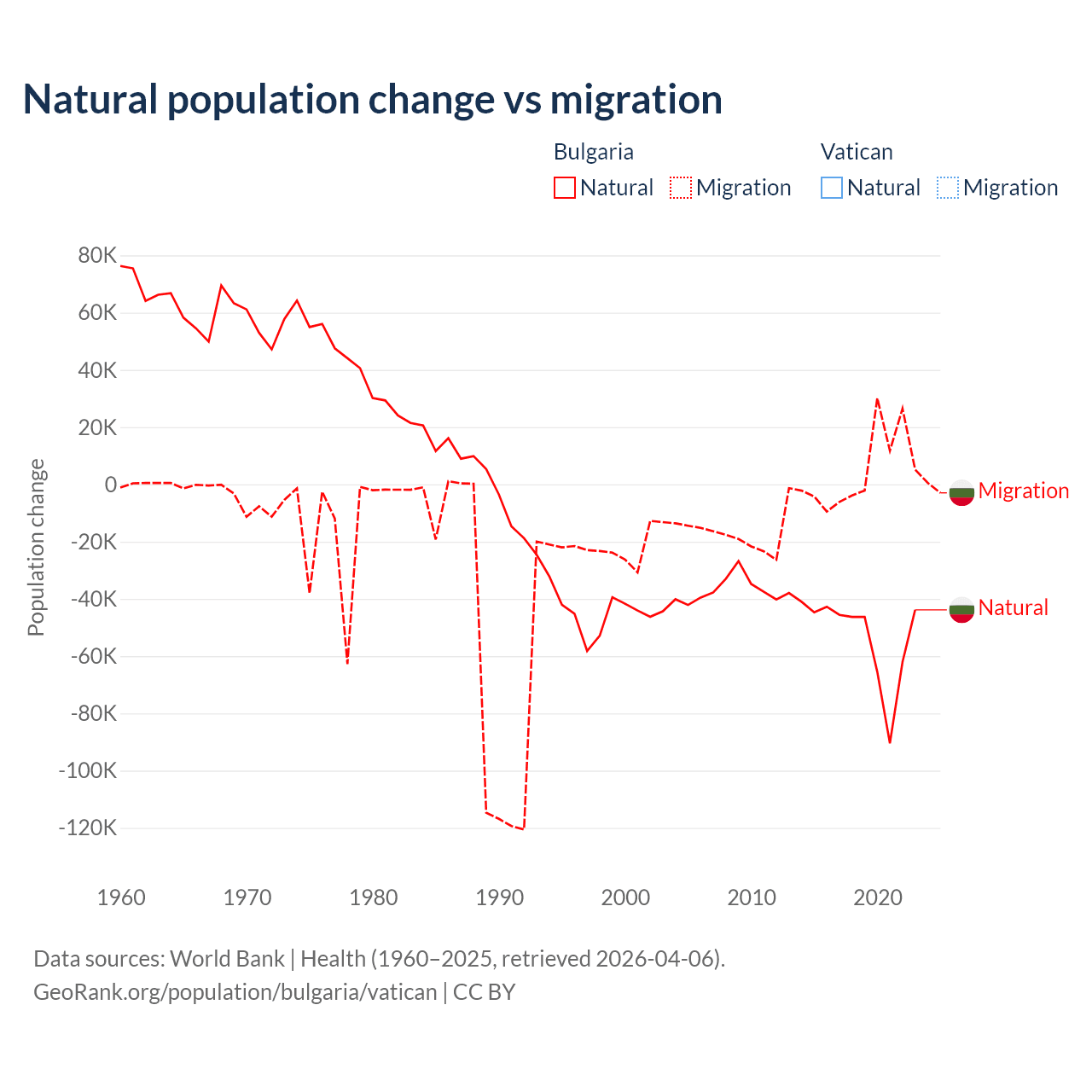Bulgaria vs Vatican: population by year and forecast