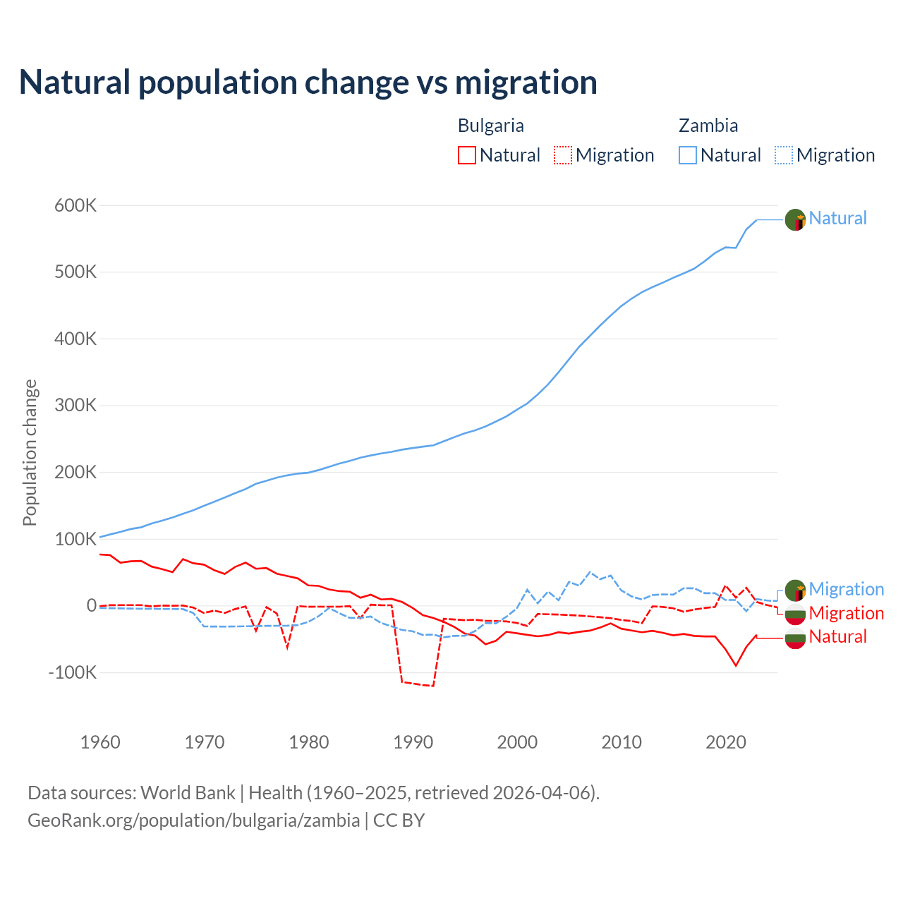 Population differences between Bulgaria and Zambia