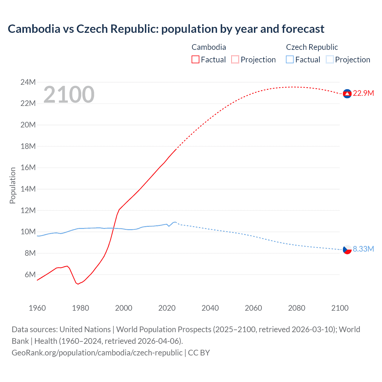 Population differences between Cambodia and the Czech Republic