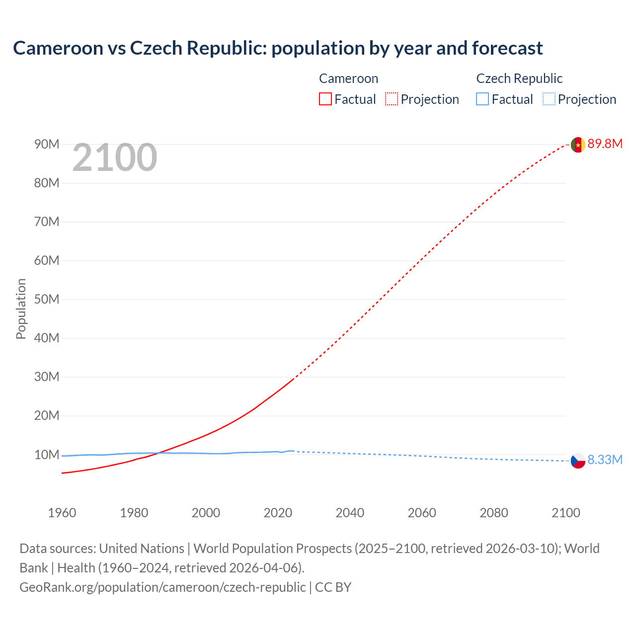Cameroon vs Czech Republic: population by year and forecast