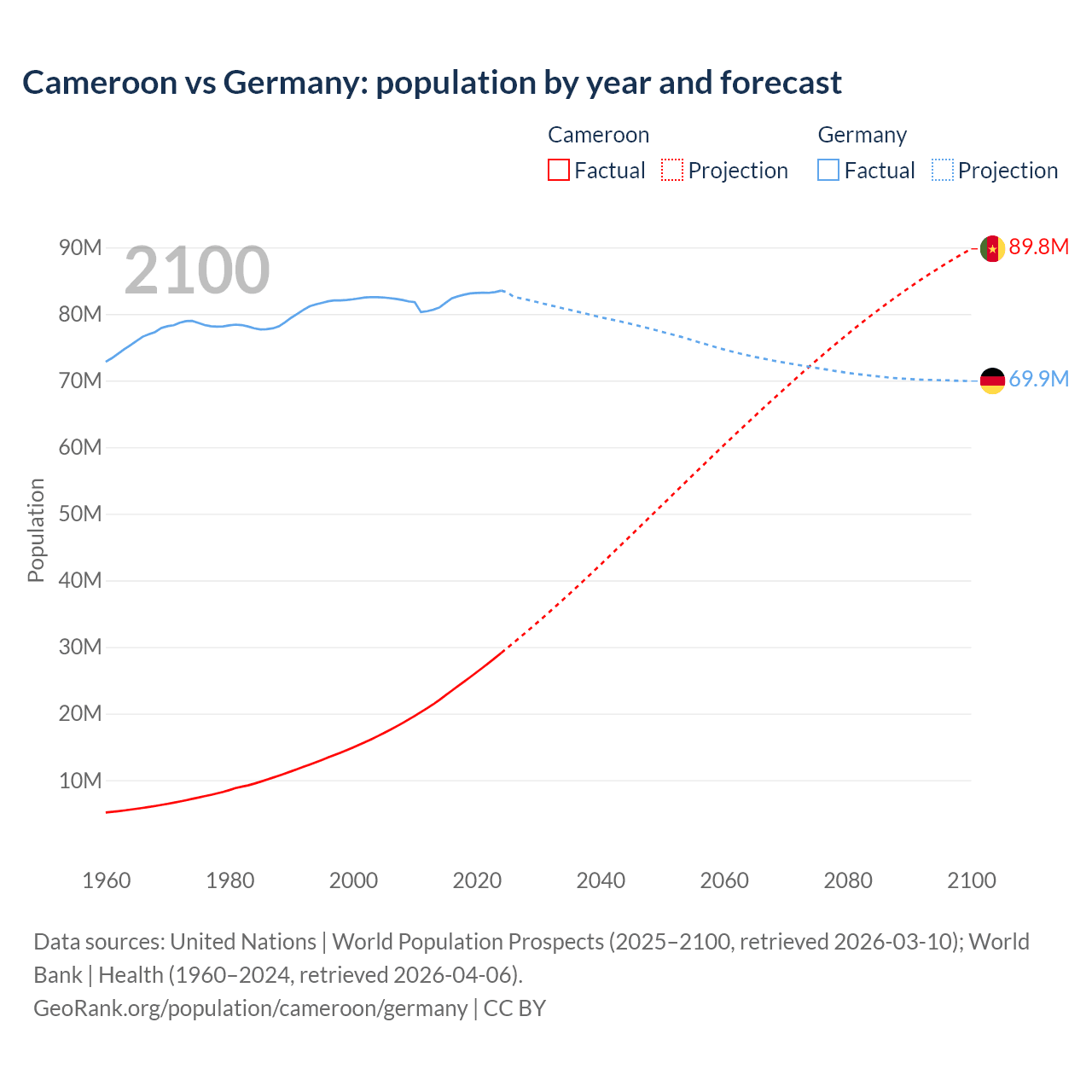Cameroon vs Germany: population by year and forecast