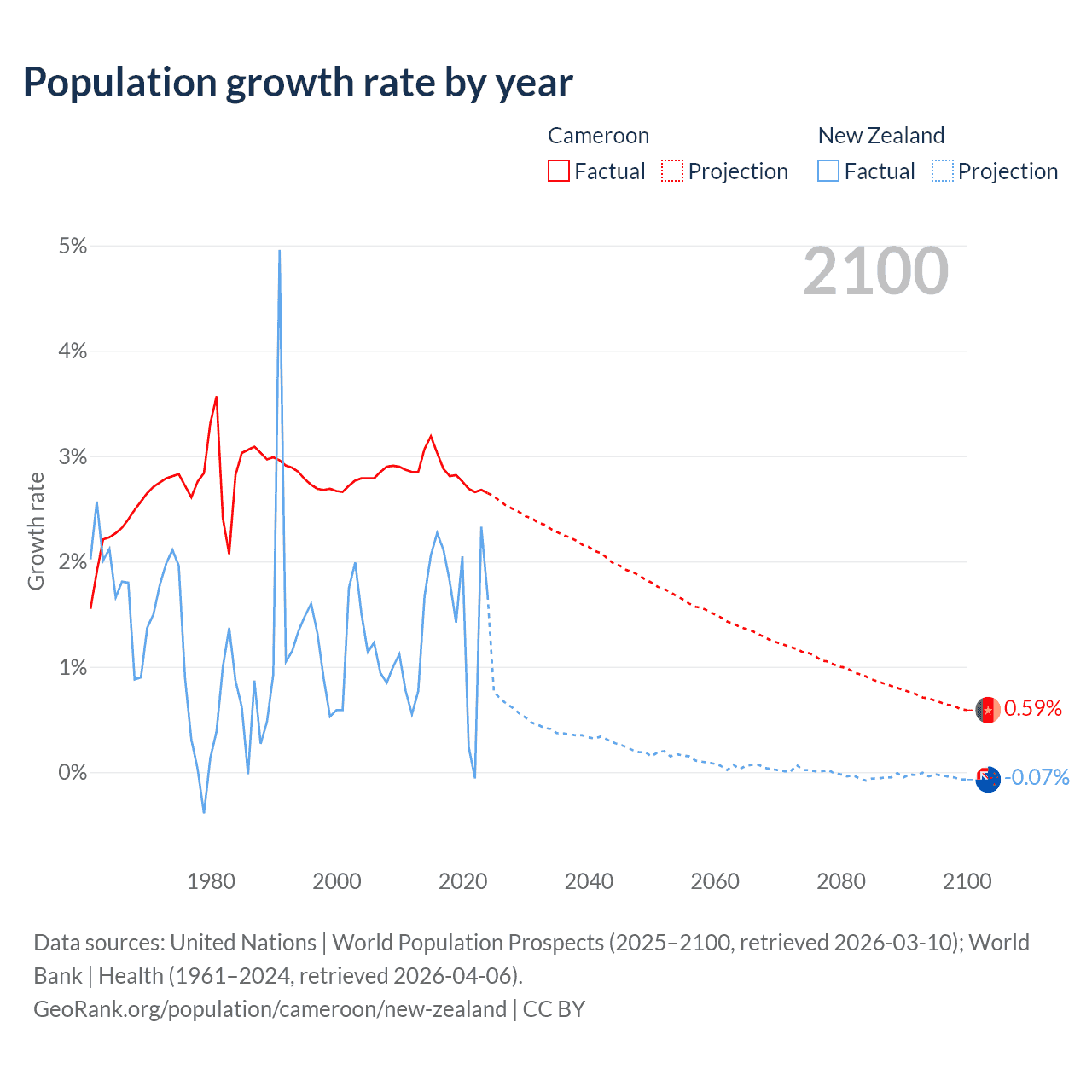 Cameroon vs New Zealand: population by year and forecast