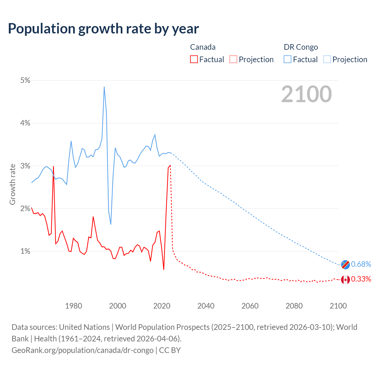 Canada vs DR Congo: population by year and forecast