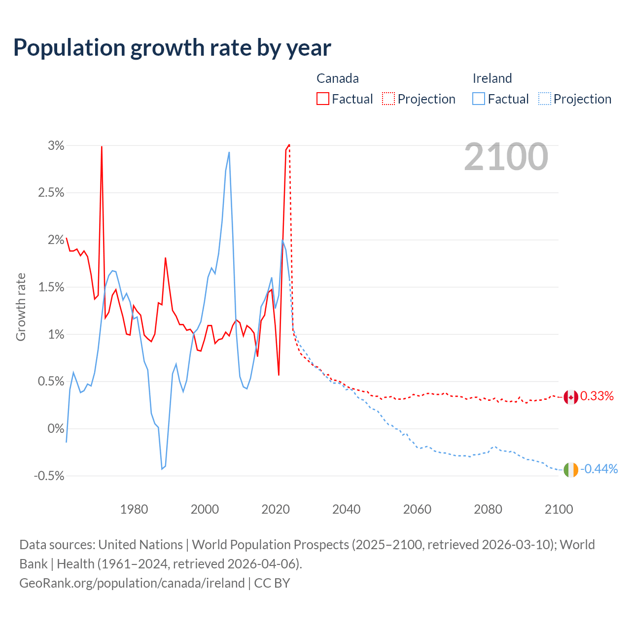- For the last 10 years, Canada has had an average growth rate of +1.5% per year vs +1.41% in Ireland.