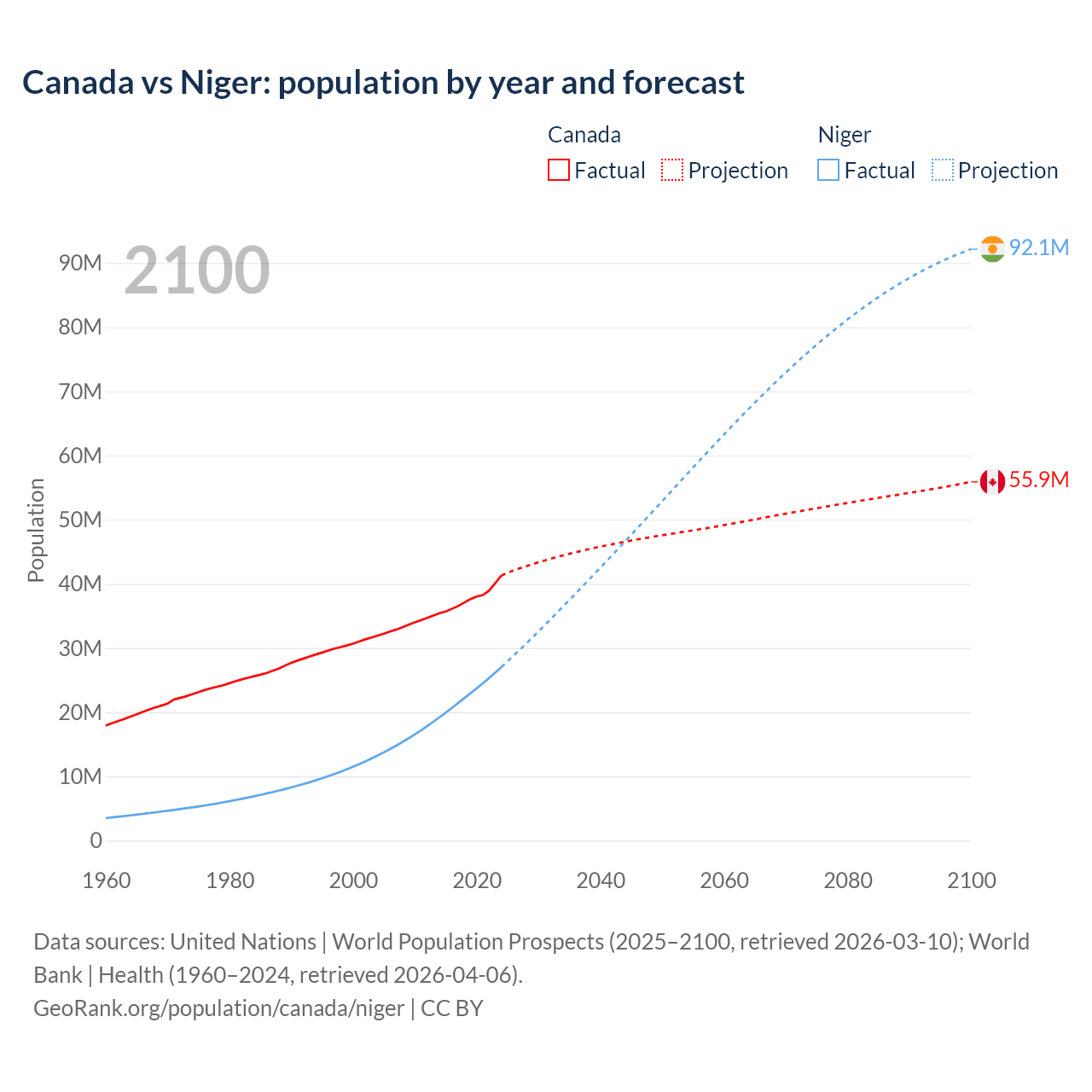 Canada vs Niger: population by year and forecast