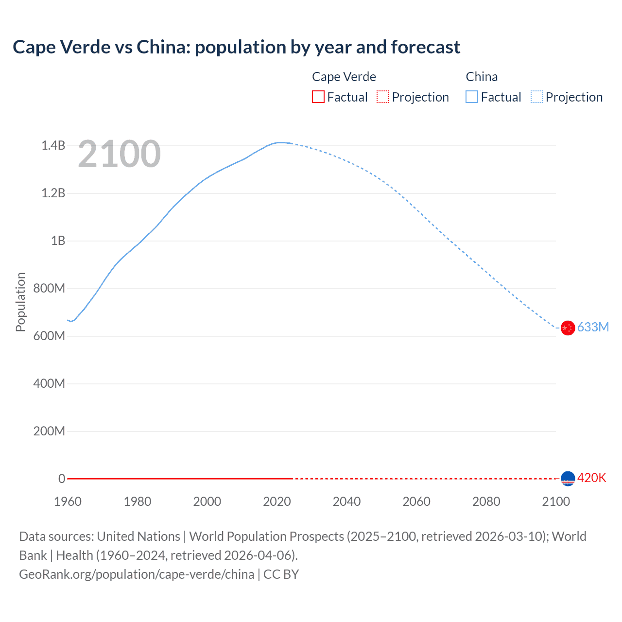 Cape Verde vs China: population by year and forecast