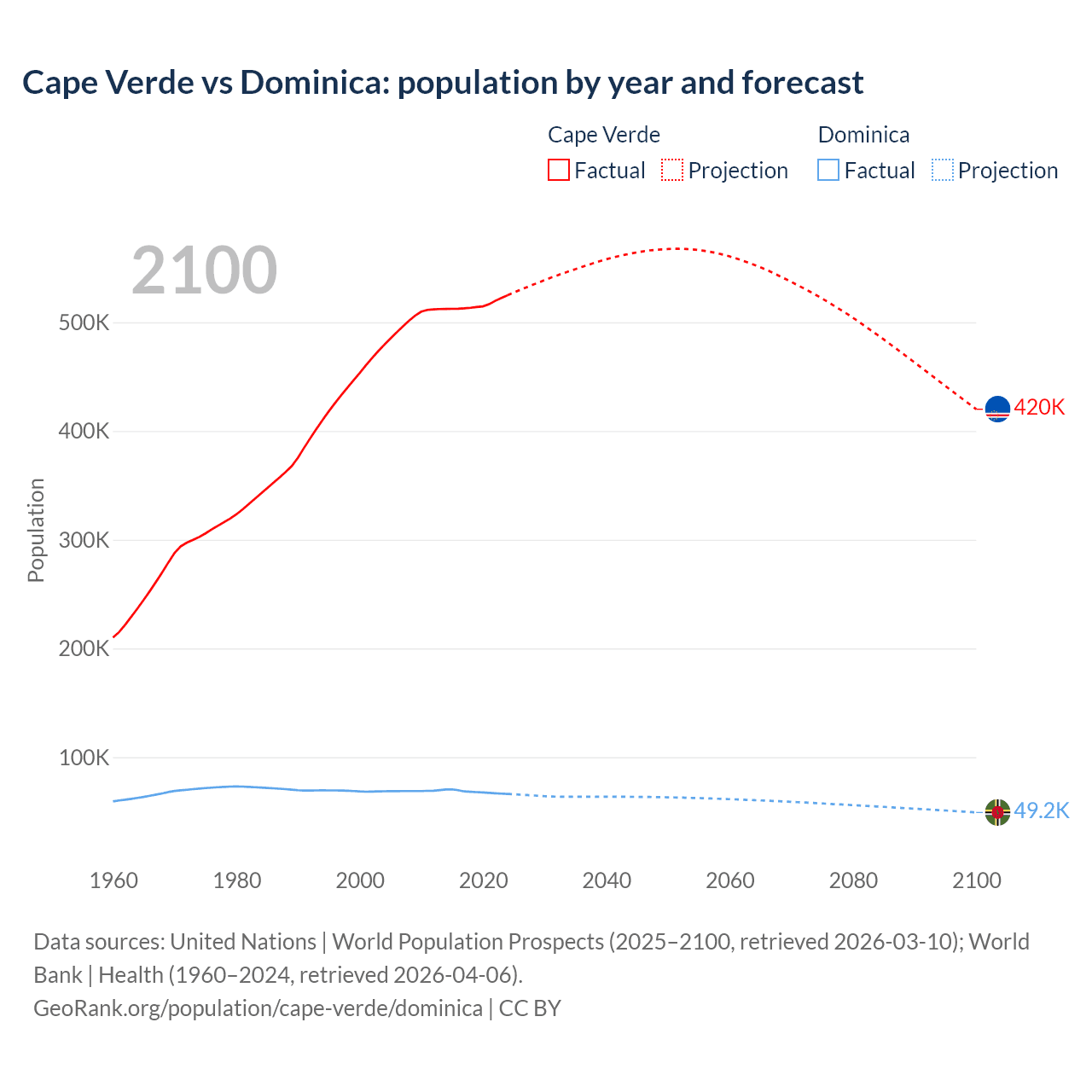 Cape Verde vs Dominica: population by year and forecast