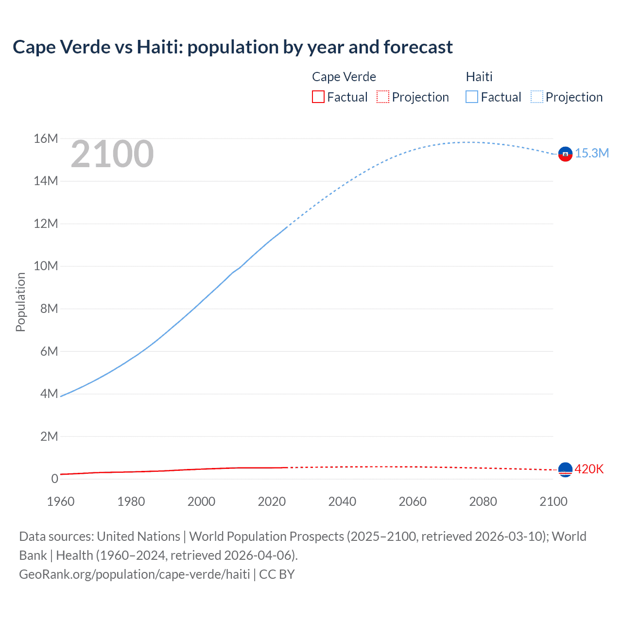 Cape Verde vs Haiti: population by year and forecast